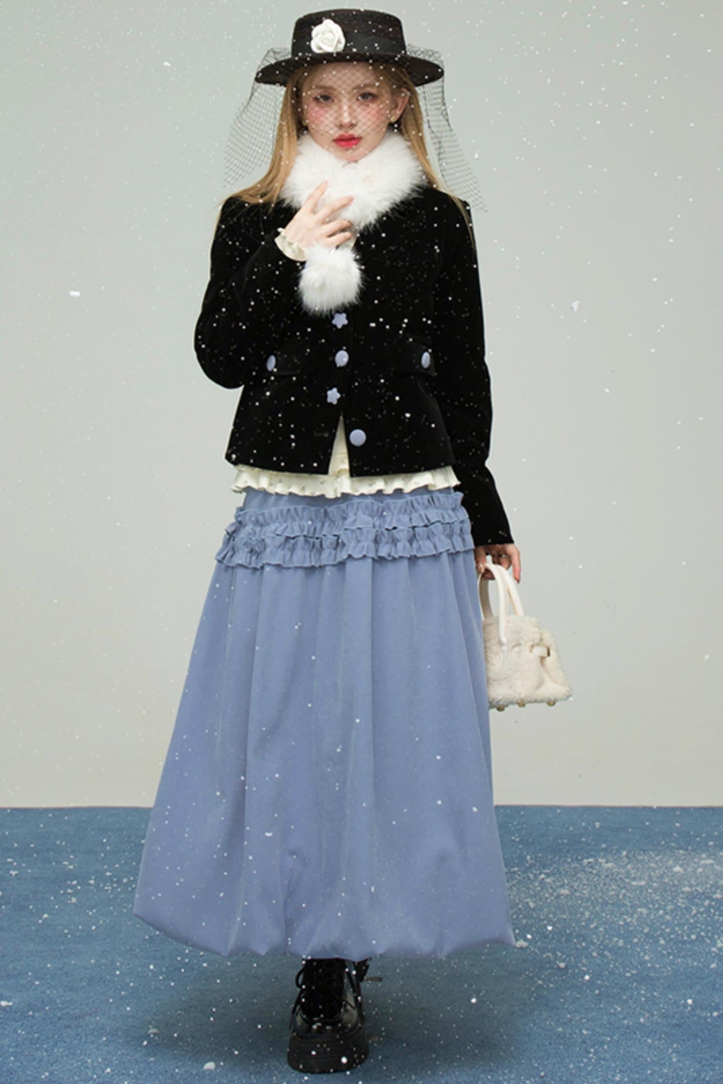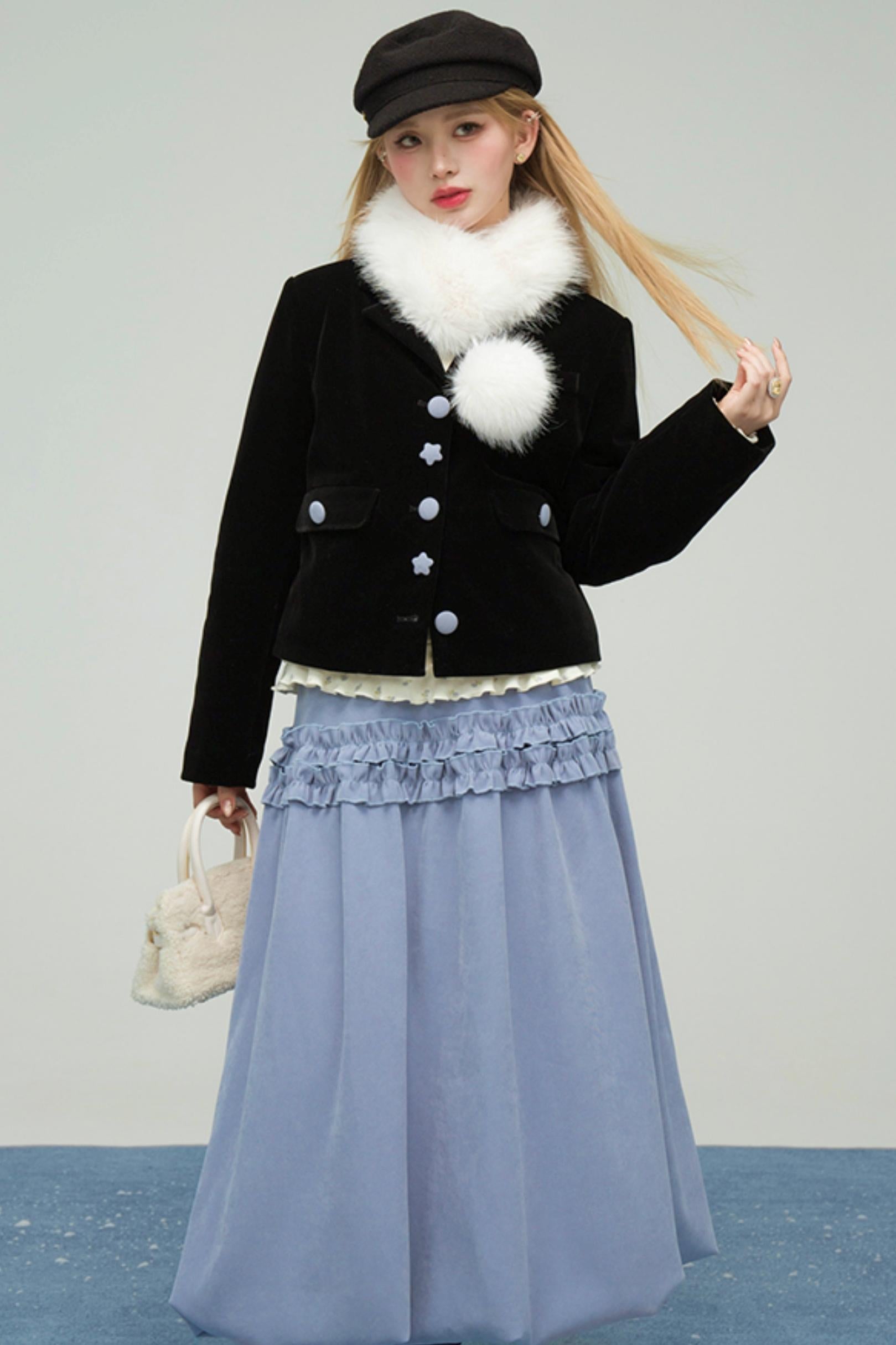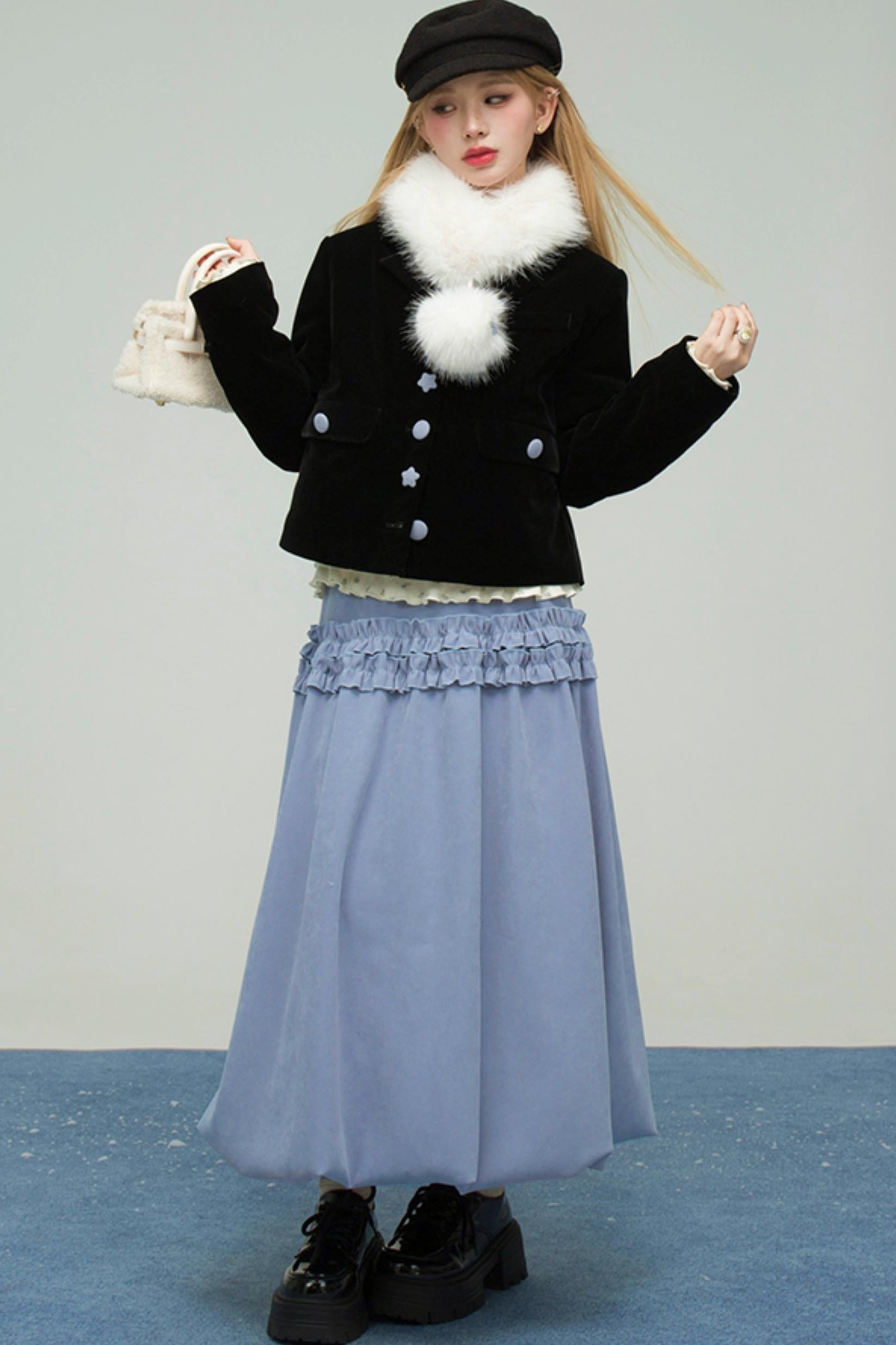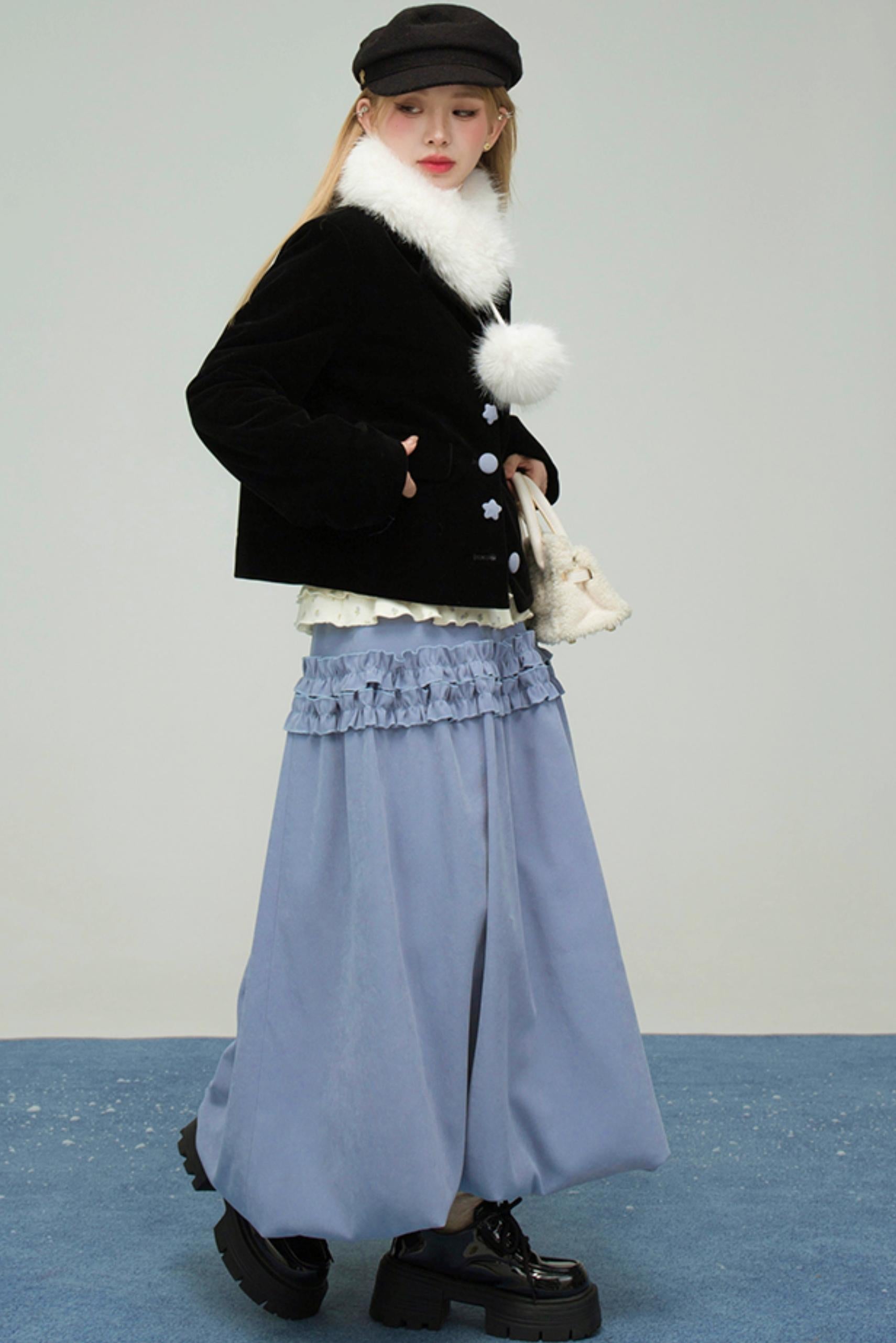 ❤ベルベットカラーブロックドファーコラージャケット❤
