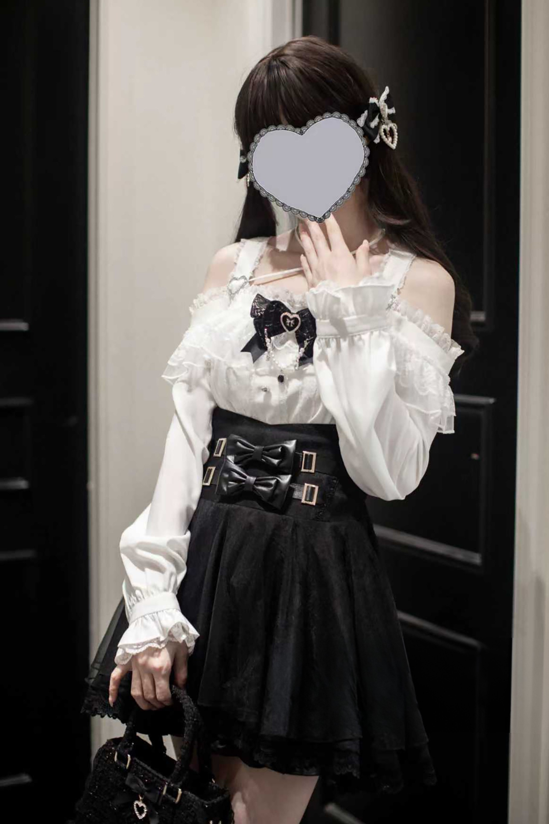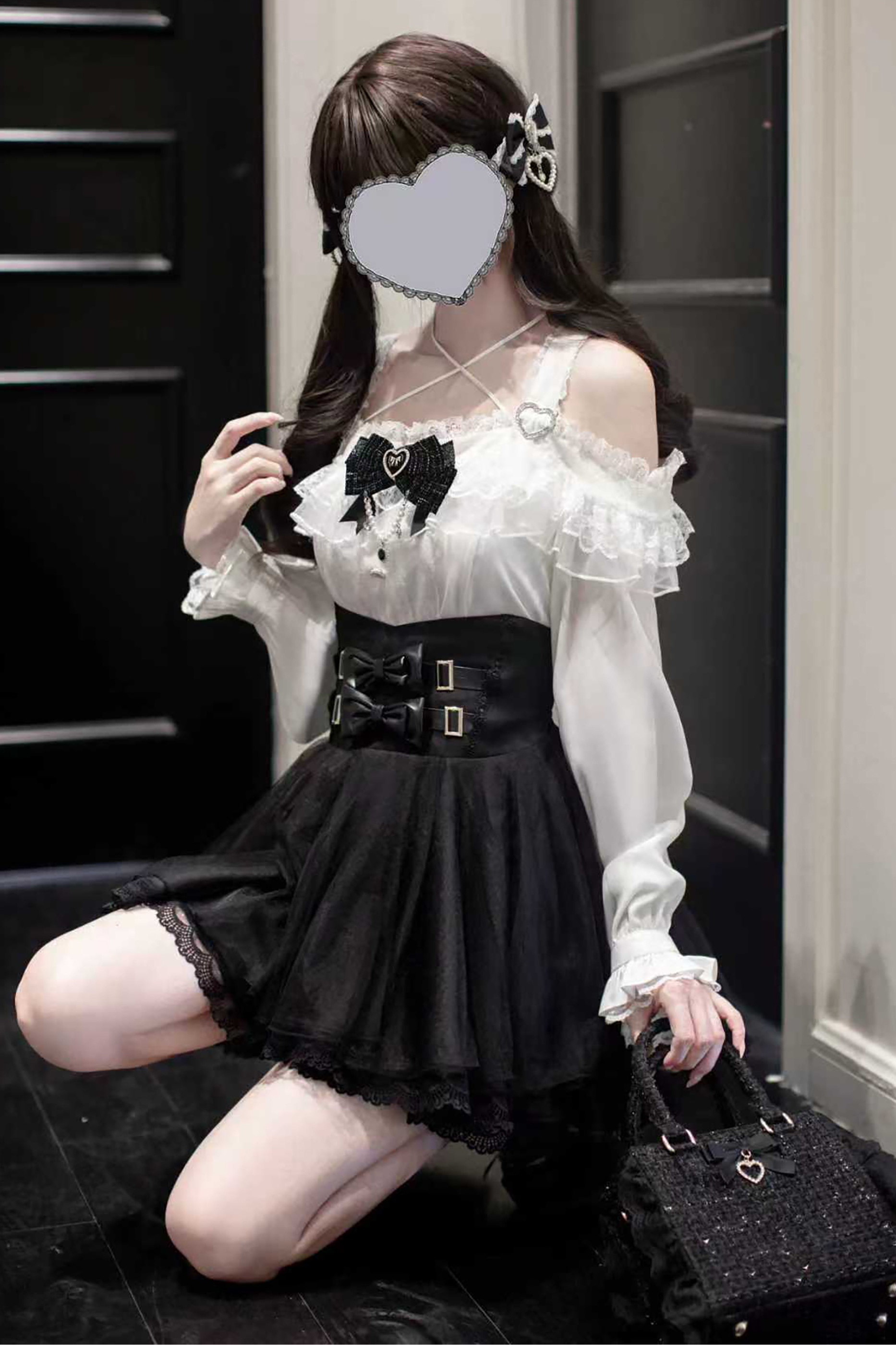 ❤Mine off-the-shoulder shirt + check skirt with inner pants ❤