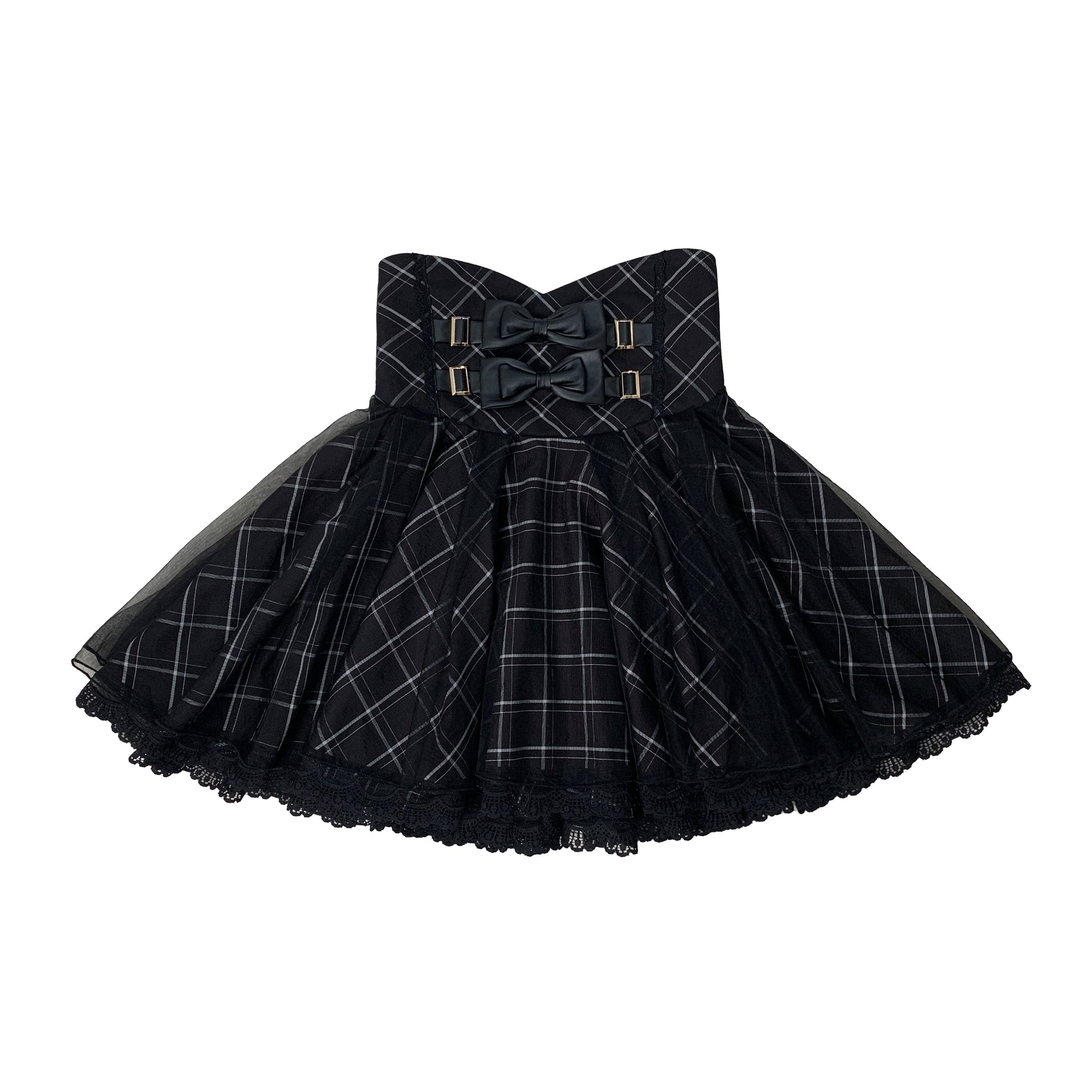 Mine off-the-shoulder shirt + checked skirt (with inner pants)