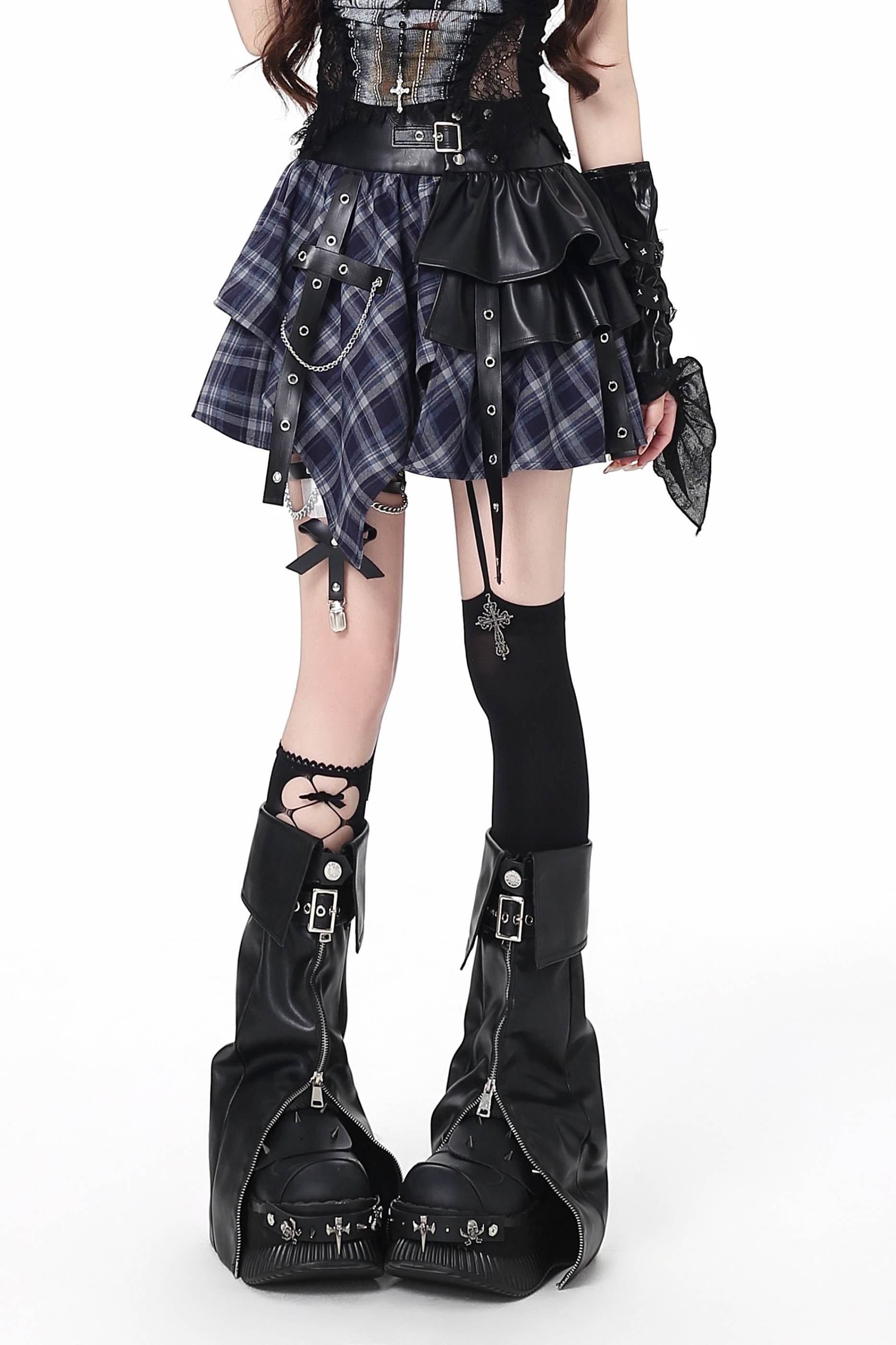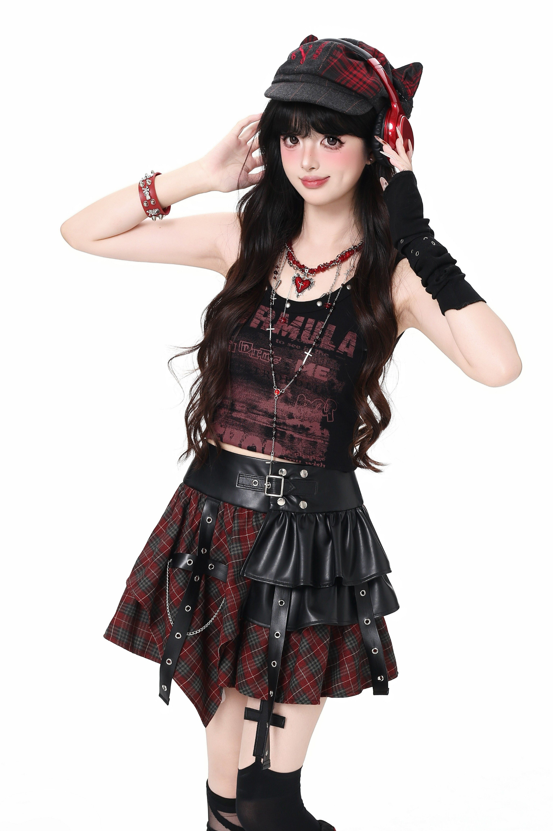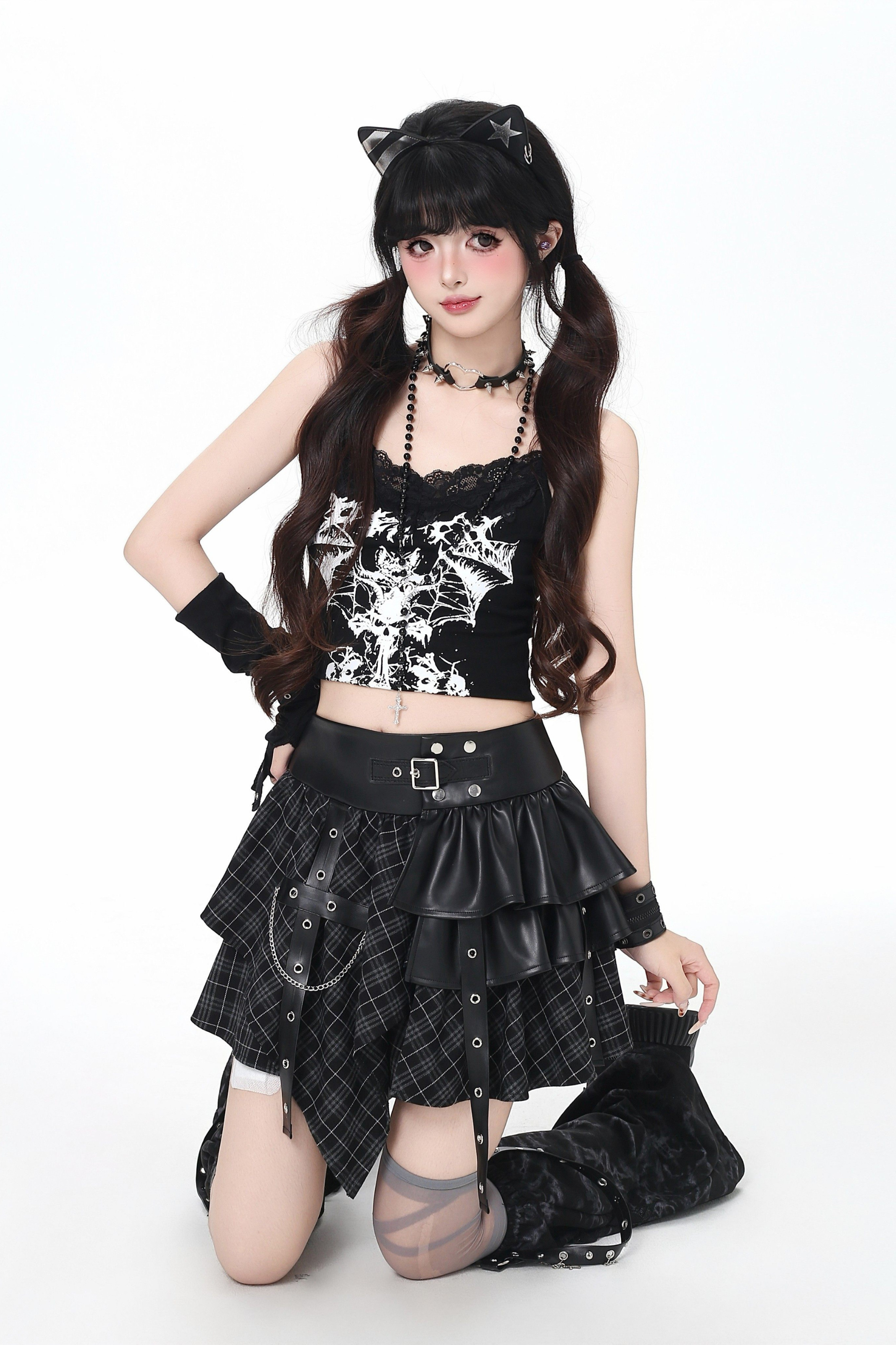 Y2Kパッチワークレザースカート