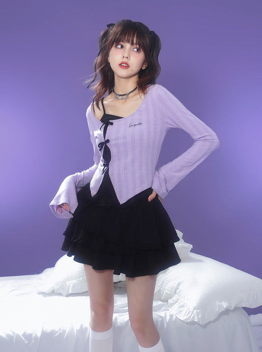 Milk Purple Trumpet Sleeve Tops