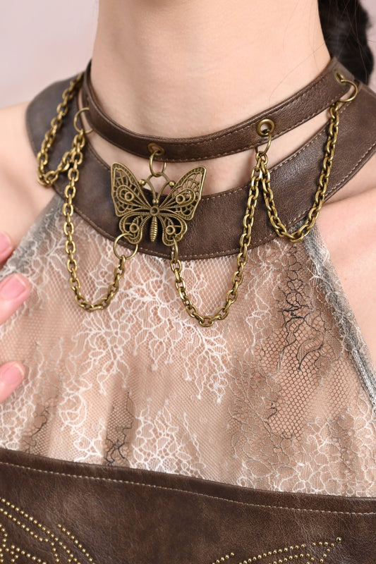[Pre-Order] Virtual Butterfly Leather Chain Necklace