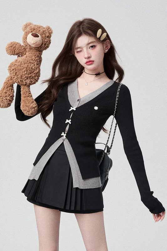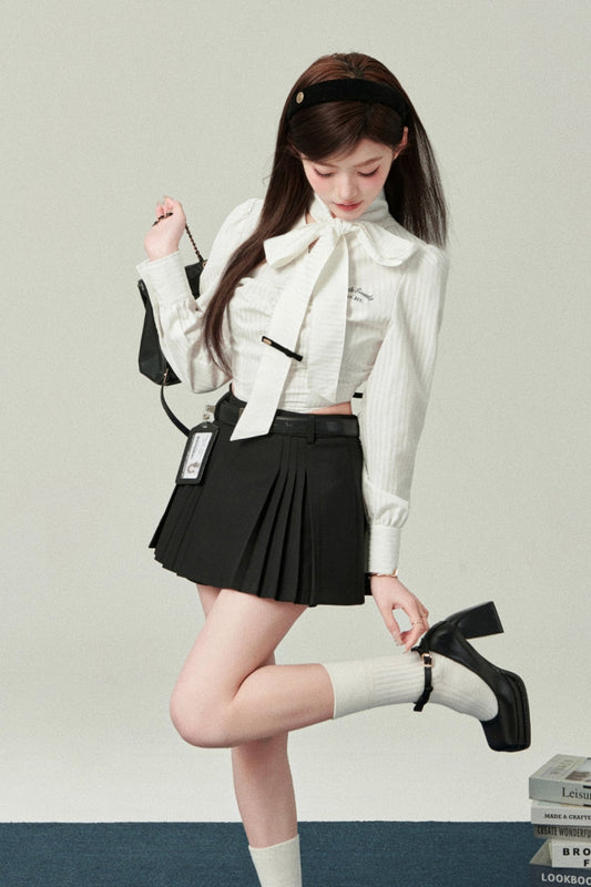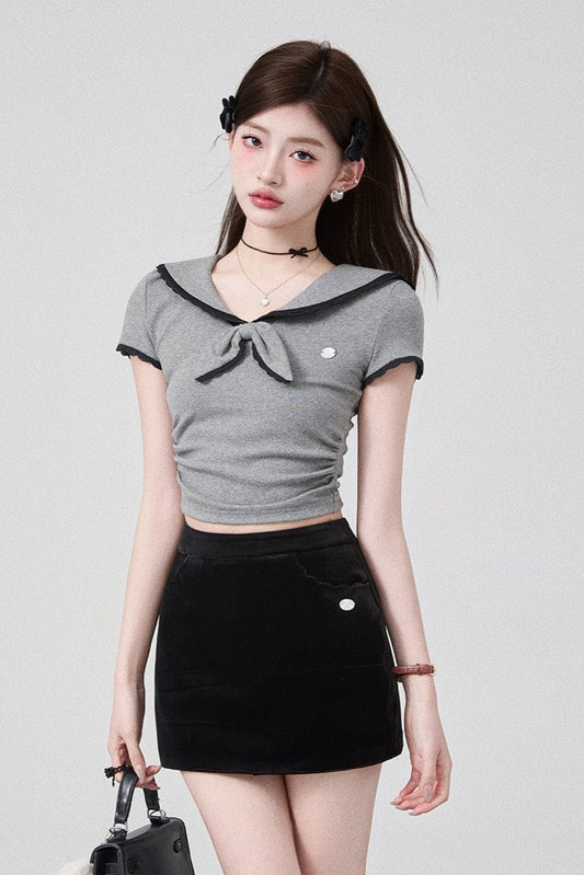 Sailor Kara Sweet Bow Knit Top + Black Skirt