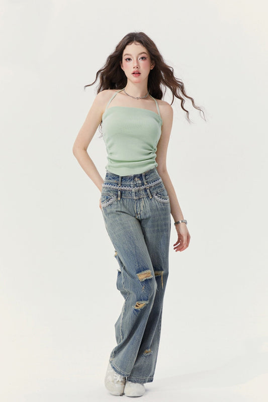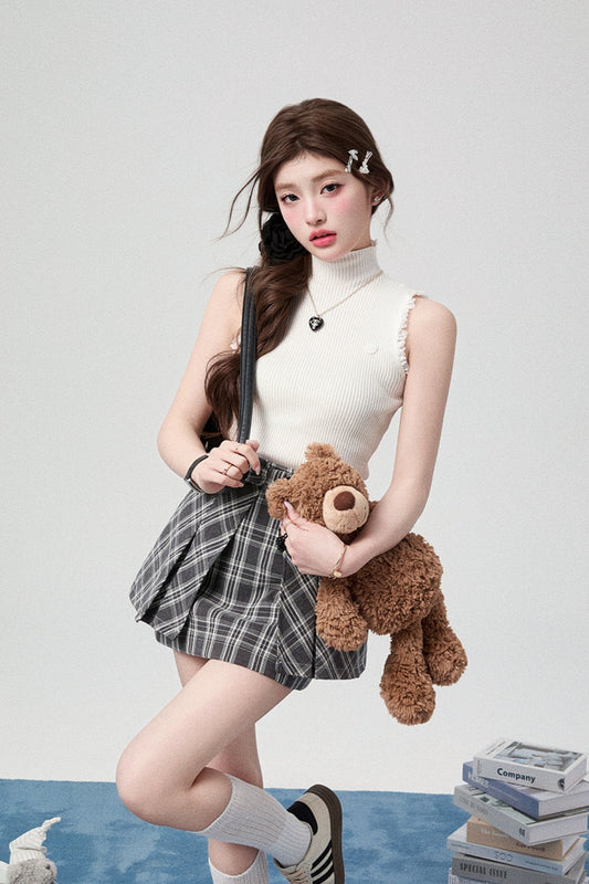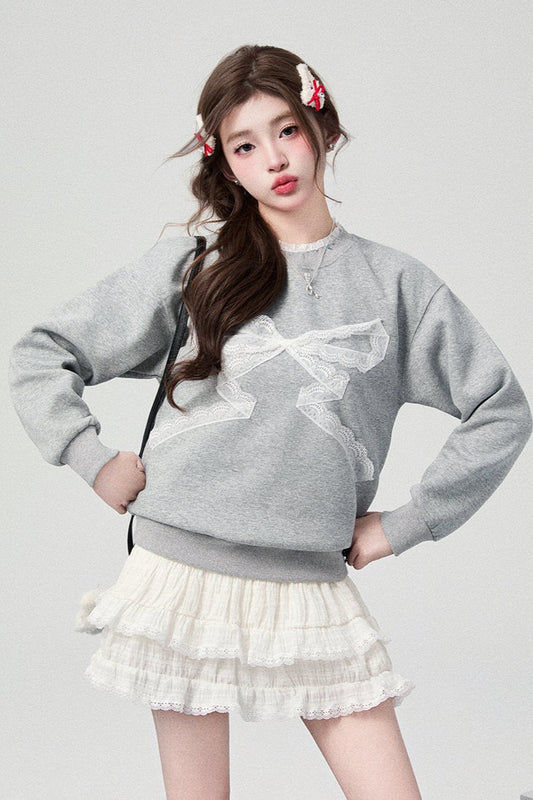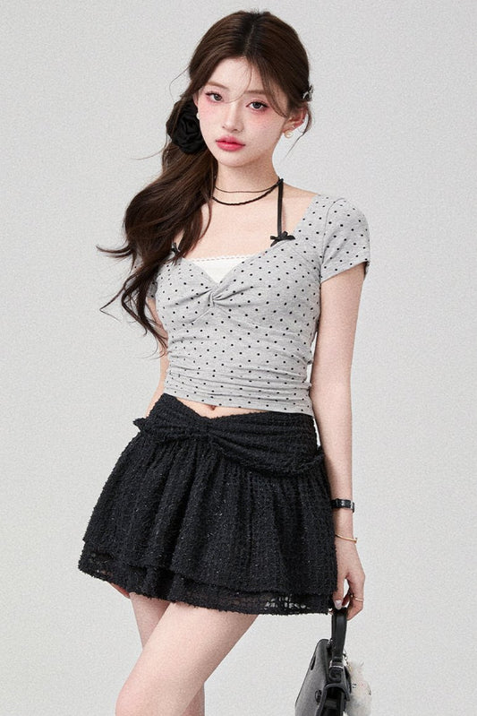 Bowan Shoulder Knit Tops + Pleated Skirt + Ribbon Cake Skirt