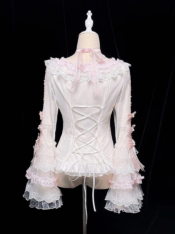 ❤︎【12月26日予約締切】ピュアスイートローズファンタジークロスリボンレースベルスリーブシャツ❤︎                                                ⚠️人気商品のためお届けに6ヶ月ほどかかってしまう場合がございます