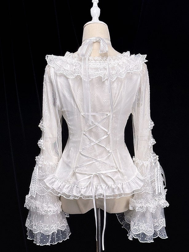 【12月26日予約締切】ピュアスイートローズファンタジークロスリボンレースベルスリーブシャツ – Belchic Skip to content