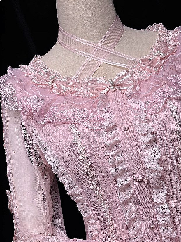 【12月26日予約締切】ピュアスイートローズファンタジークロスリボンレースベルスリーブシャツ