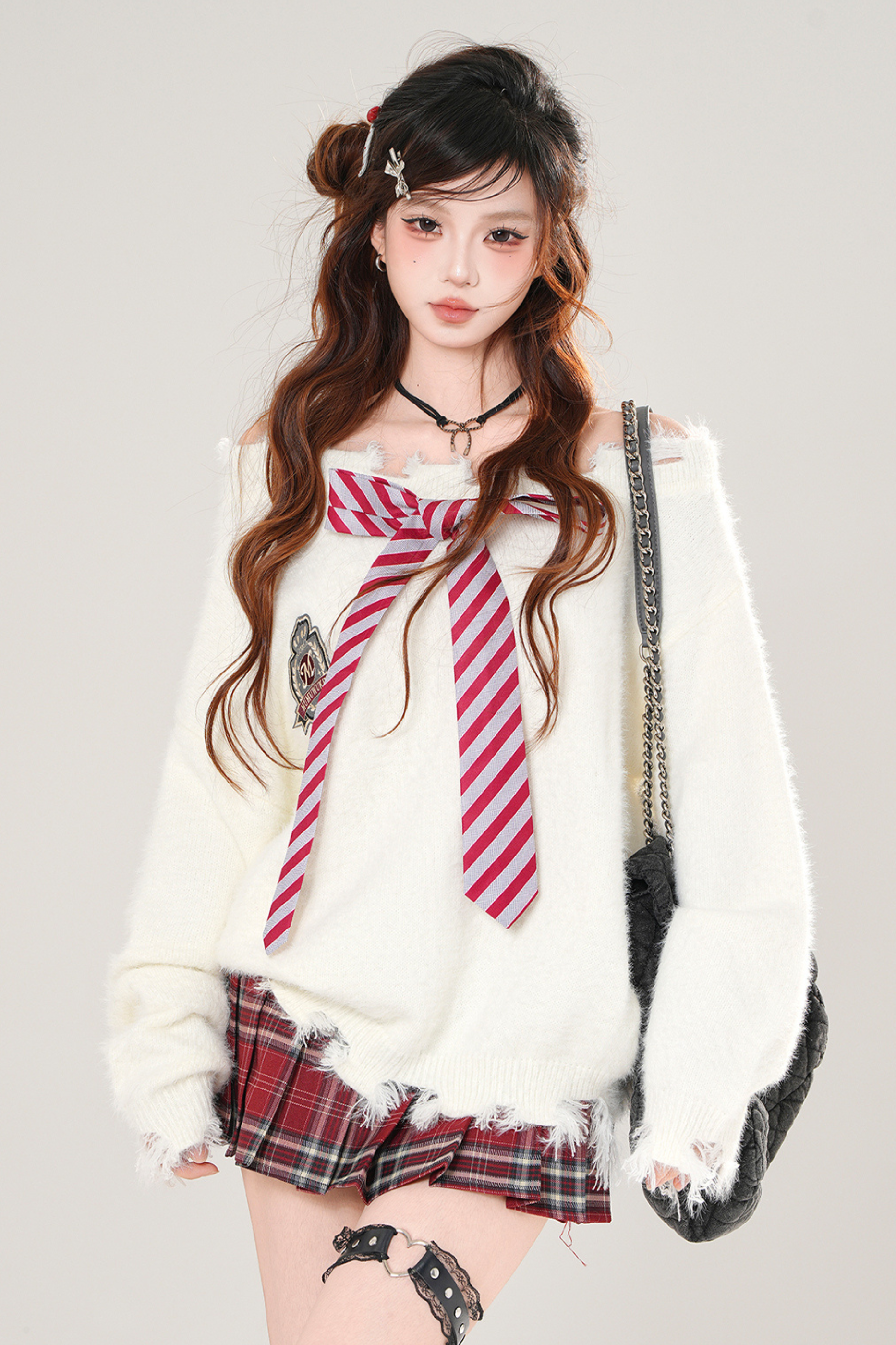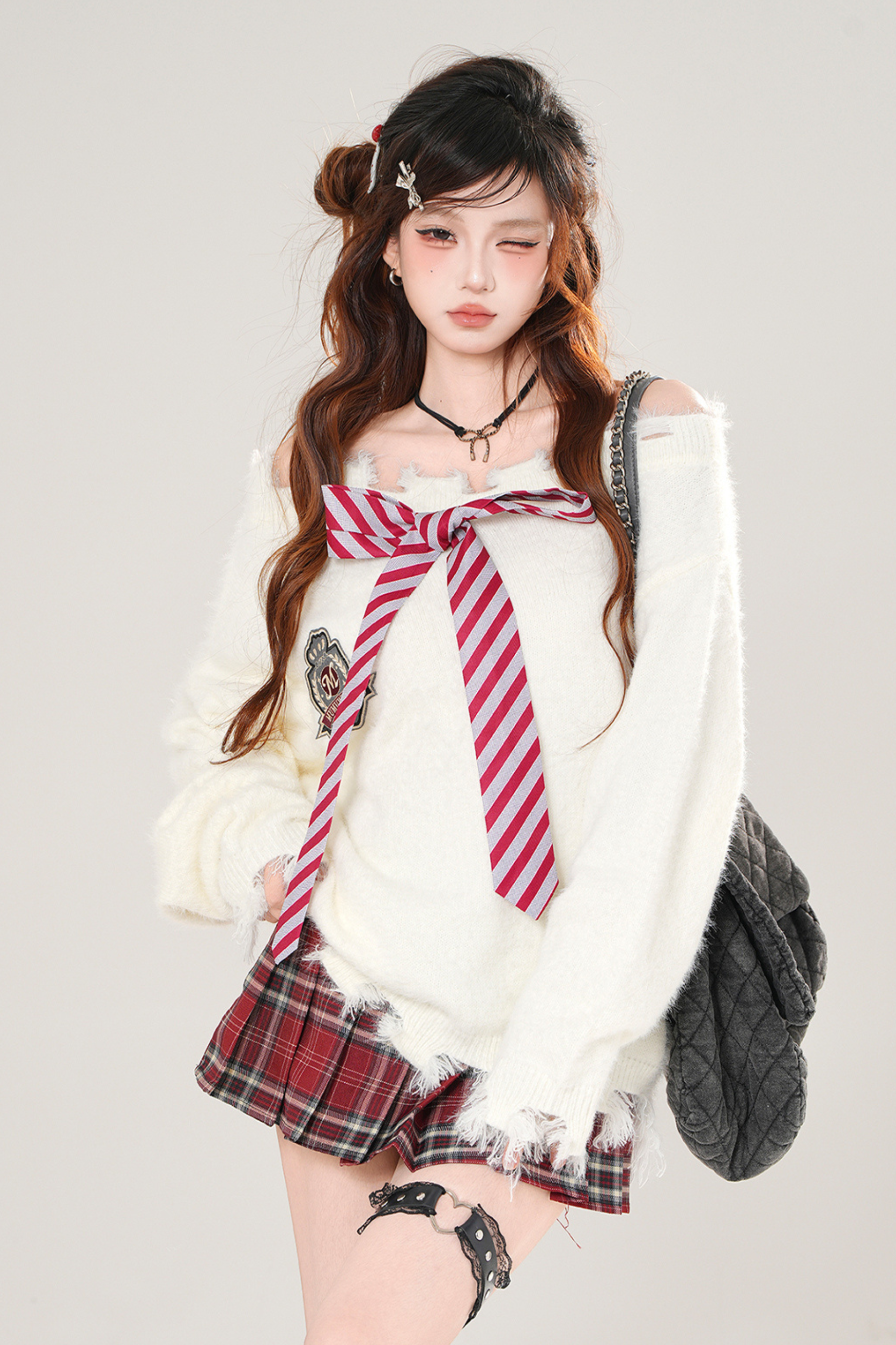 ストライプリボンオフショルダーニット – Belchic Skip to content