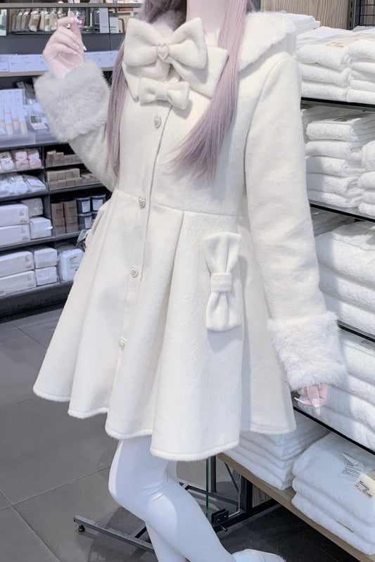 [Pre-order product] Fur Trim Pearl Ribbon Sweet Coat