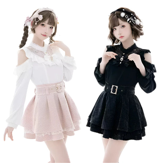Mine Series Clear Lace Ribbon Top + Pearl Skirt Set