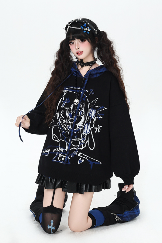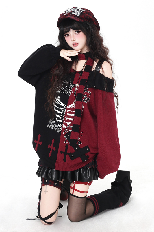 Skull Bone Gothic Off-Shoulder Top + Scarf