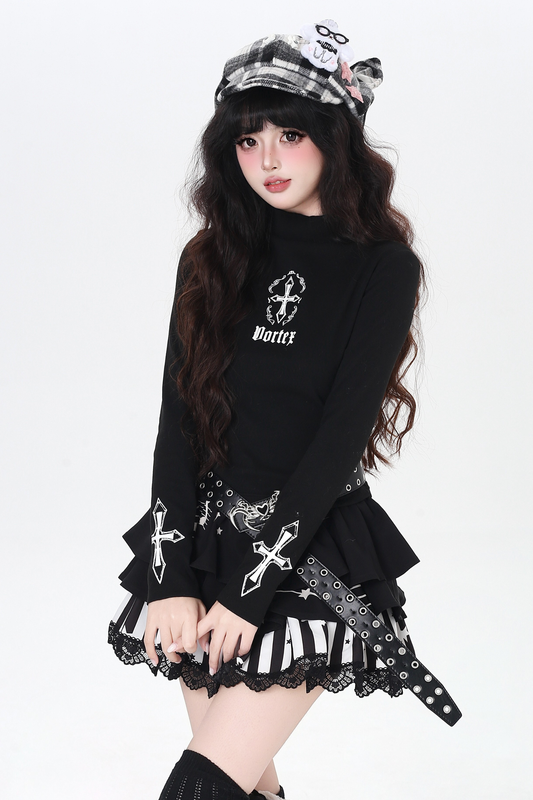 Night Party Gothic Lace Cake Asymmetrical Skirt