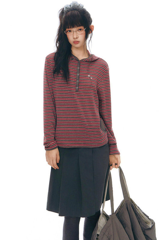 ストライプドフーデッドニットトップス