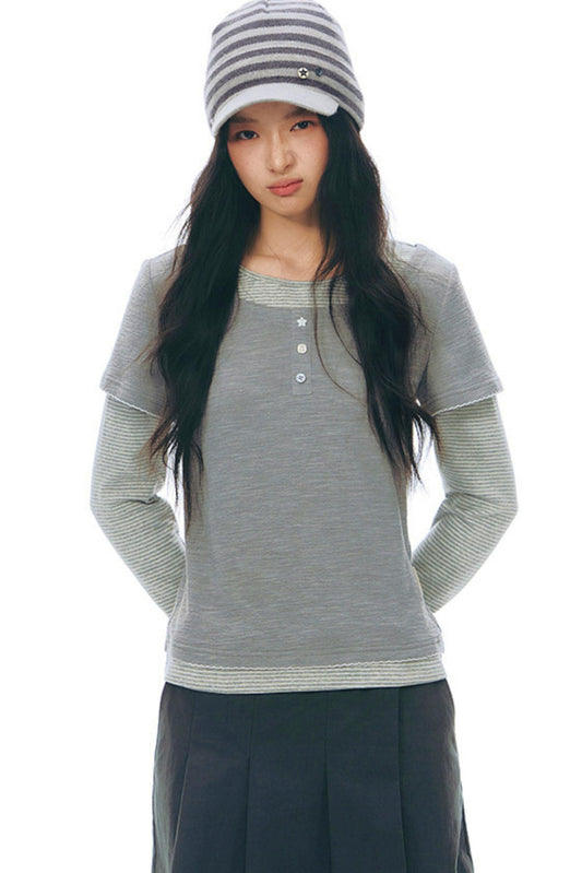 Y2Kボタンレイヤードトップス