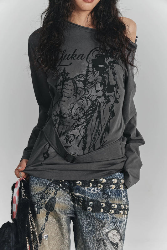 サブカルチャーワンショルダールーズトップス