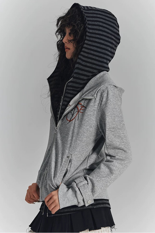 モードジッパーバイカーフードジャケット