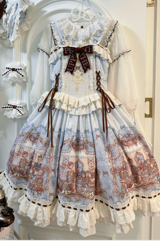 ベアティーパーティーロリータドレス+ジャンパースカート+シャツ+カチューシャ+ブローチ+エプロン
