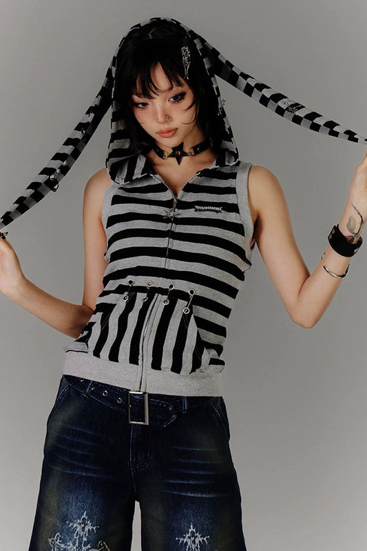 レトロストライプドラビットイヤートップス