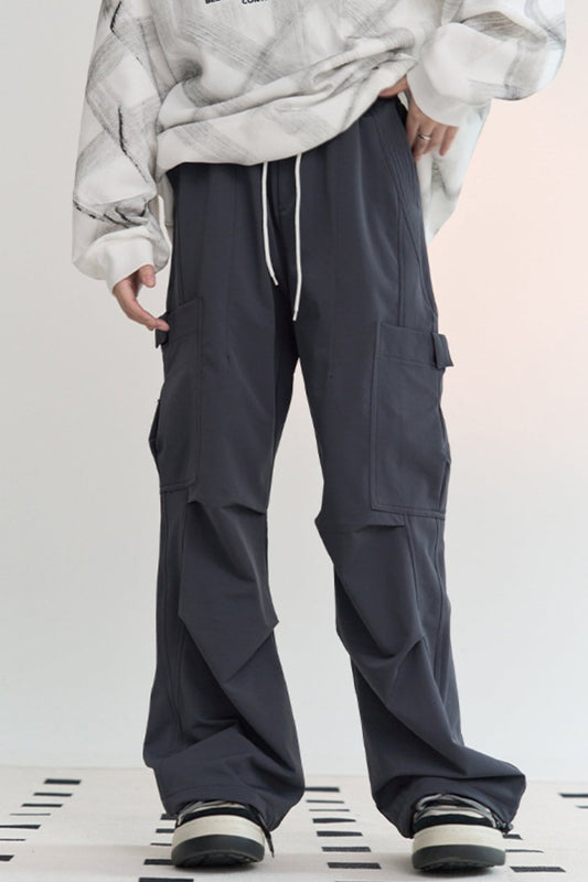 Knee Pleated Straight Leg Cargo Pants