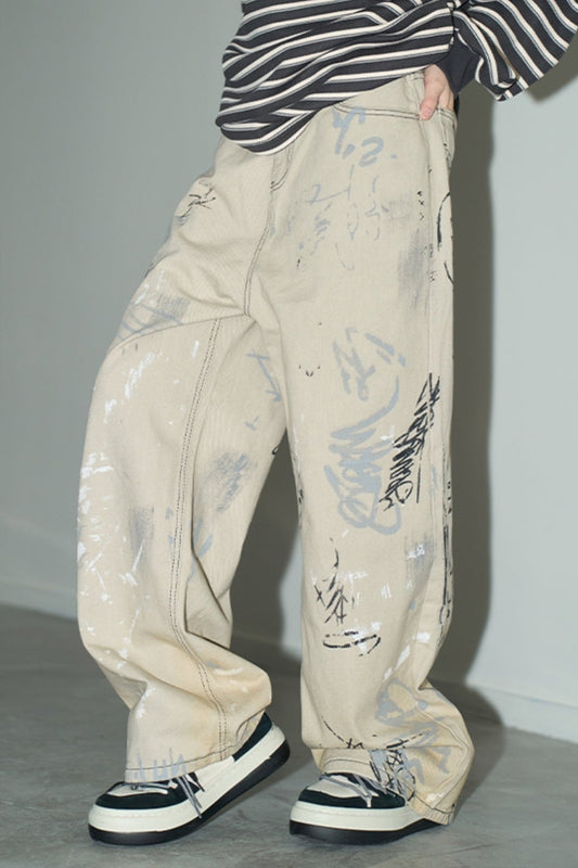 Loose Graffiti Light Color Straight Pants
