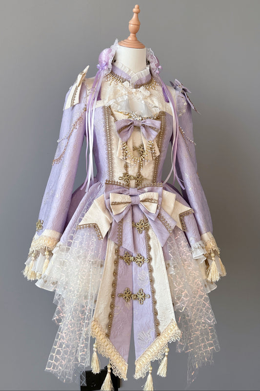 Striped Grid Fantasy Dress Set + Asymmetrical Tulle Skirt + Veil