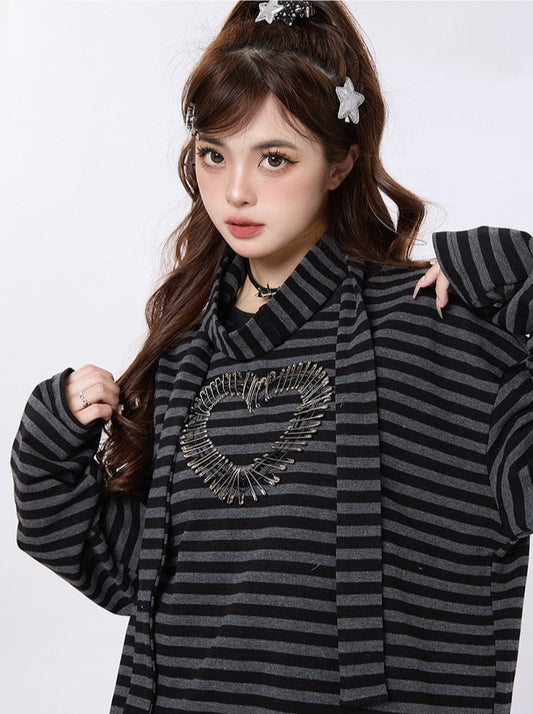 American Retro Art Striped Loose Horn Button Knit Cardigan