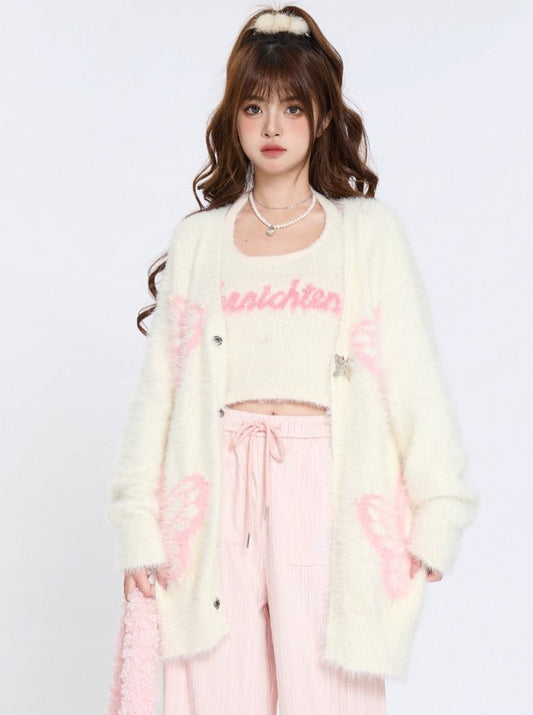 Niche Design Retro Tie-Dye Two Piece Halter Neck Knit Cami & Sweater