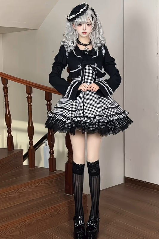 千鳥格子ダークスイートスリーブ付きロリータドレス