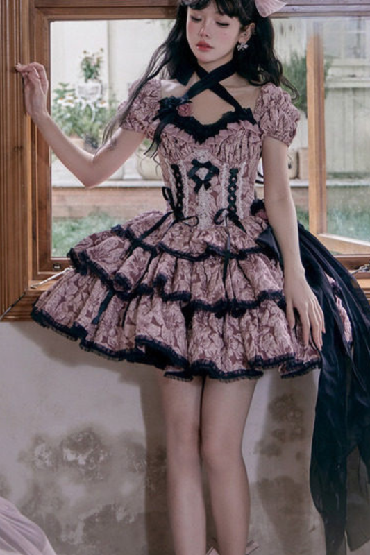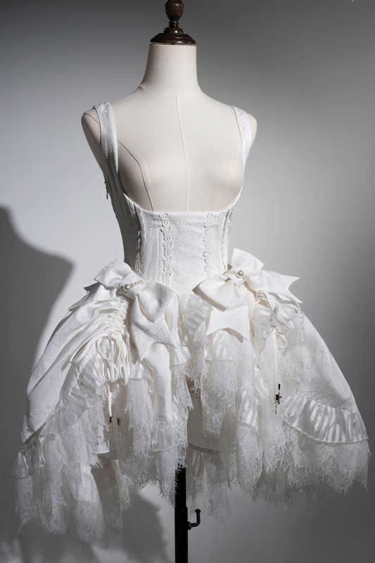 レイヤーフリルスイートプリンセスロリータジャンパースカート+テール+ヘアバンド+ケープ+ボンネット