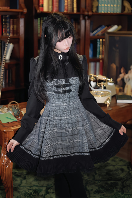 千鳥格子ダークスイートスリーブ付きロリータドレス