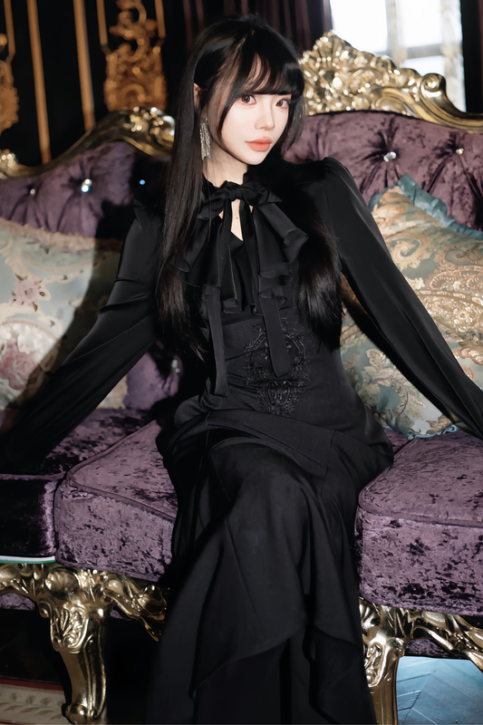 【2月23日予約締切】ドーンブレイカーゴシックフリルスタンドカラージャカードリボンシャツ