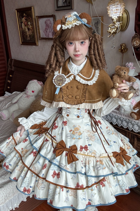 レイヤーフリルスイートプリンセスロリータジャンパースカート+テール+ヘアバンド+ケープ+ボンネット
