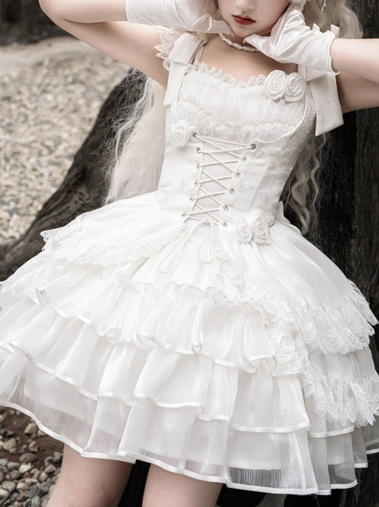 Lolita Wedding Rose Lace-Up Tiered Bustier & Sass Dress Set