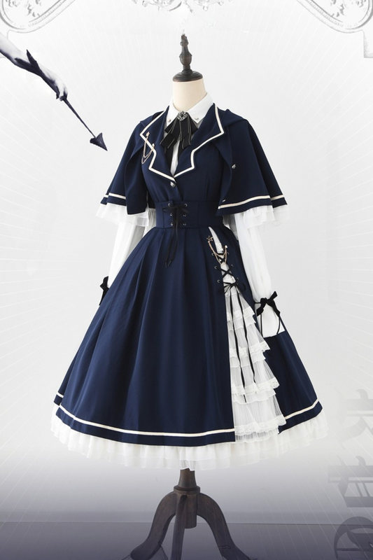 Chic mermaid dress + lace-up short dress + cloak coat + collar + ribbon brooch