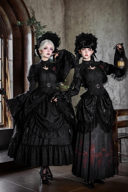 [Pre-order Deadline Feb 27] Blossom and Rose Lolita Romantic Jacquard Bustier Dress + Back Ribbon Train + Head Veil