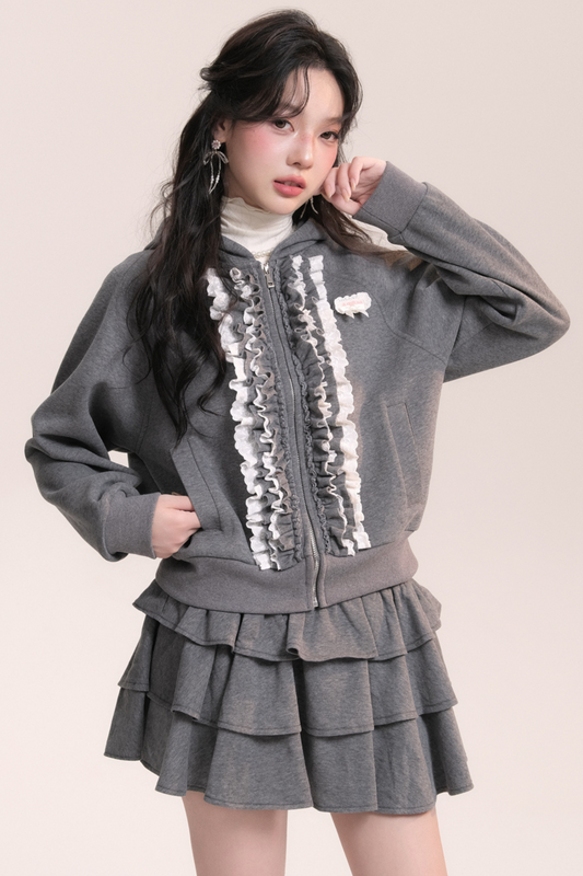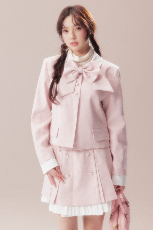 up cross collar jacket + short jacket + dress + hair band + ribbon