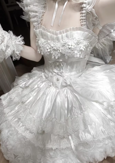 [Pre-order Deadline Feb 27] Blossom and Rose Lolita Romantic Bustier Dress + Back Ribbon Train + Head Veil