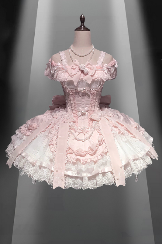 [Deadline for reservations: December 18] Jewel Ribbon Color Sweet Lace Check Dress Setup