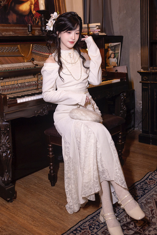 レースメイドベリーニット+ショートスカート+ロングスカート
