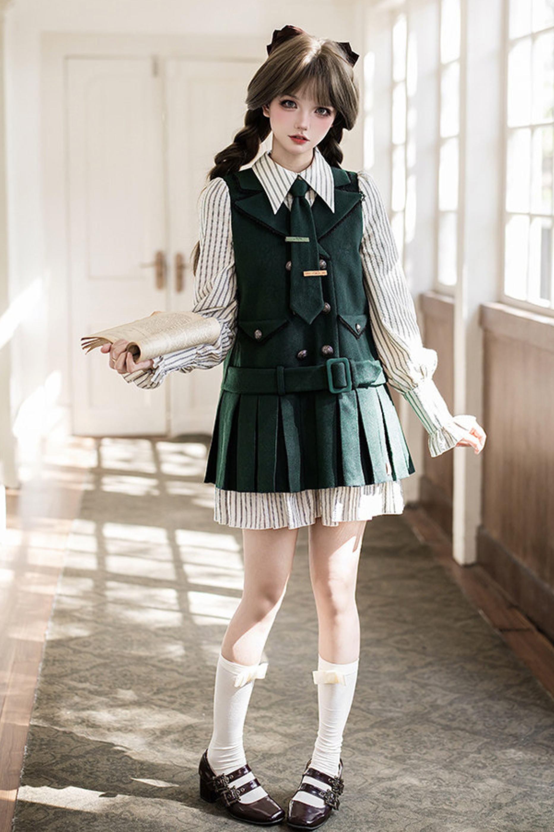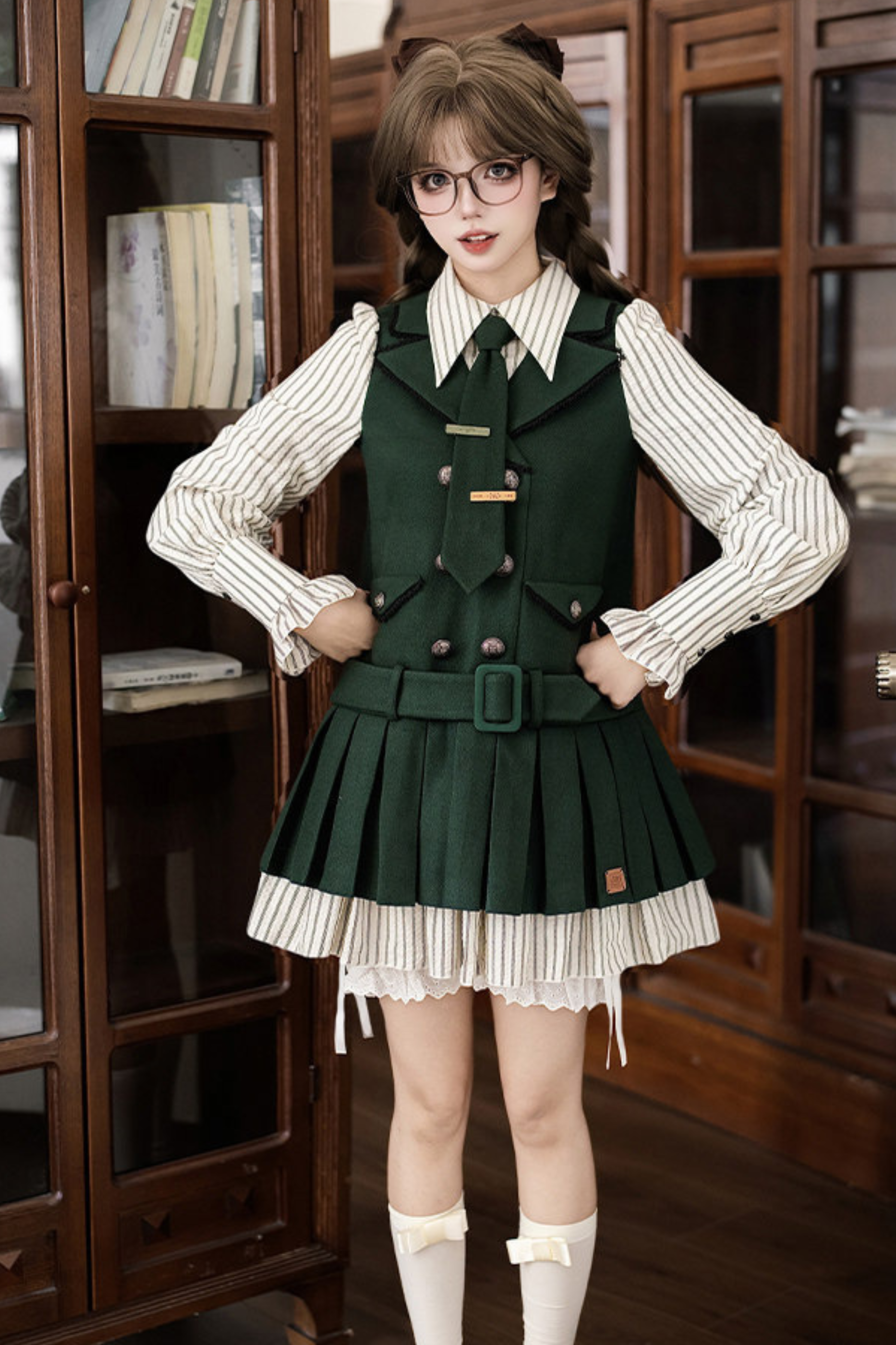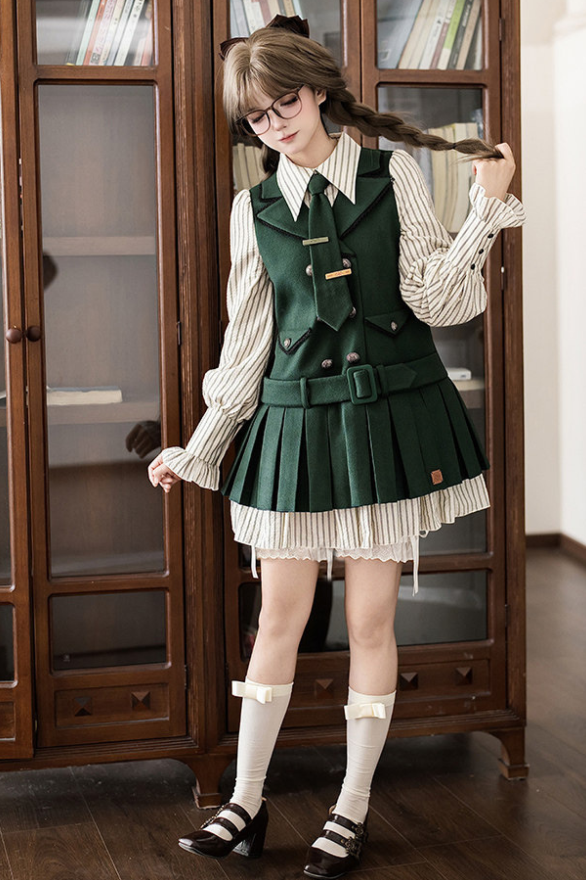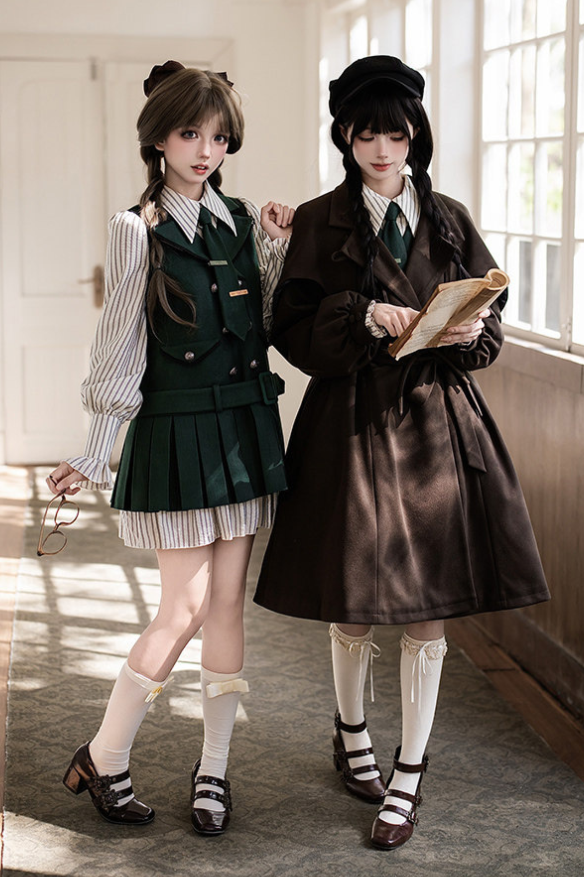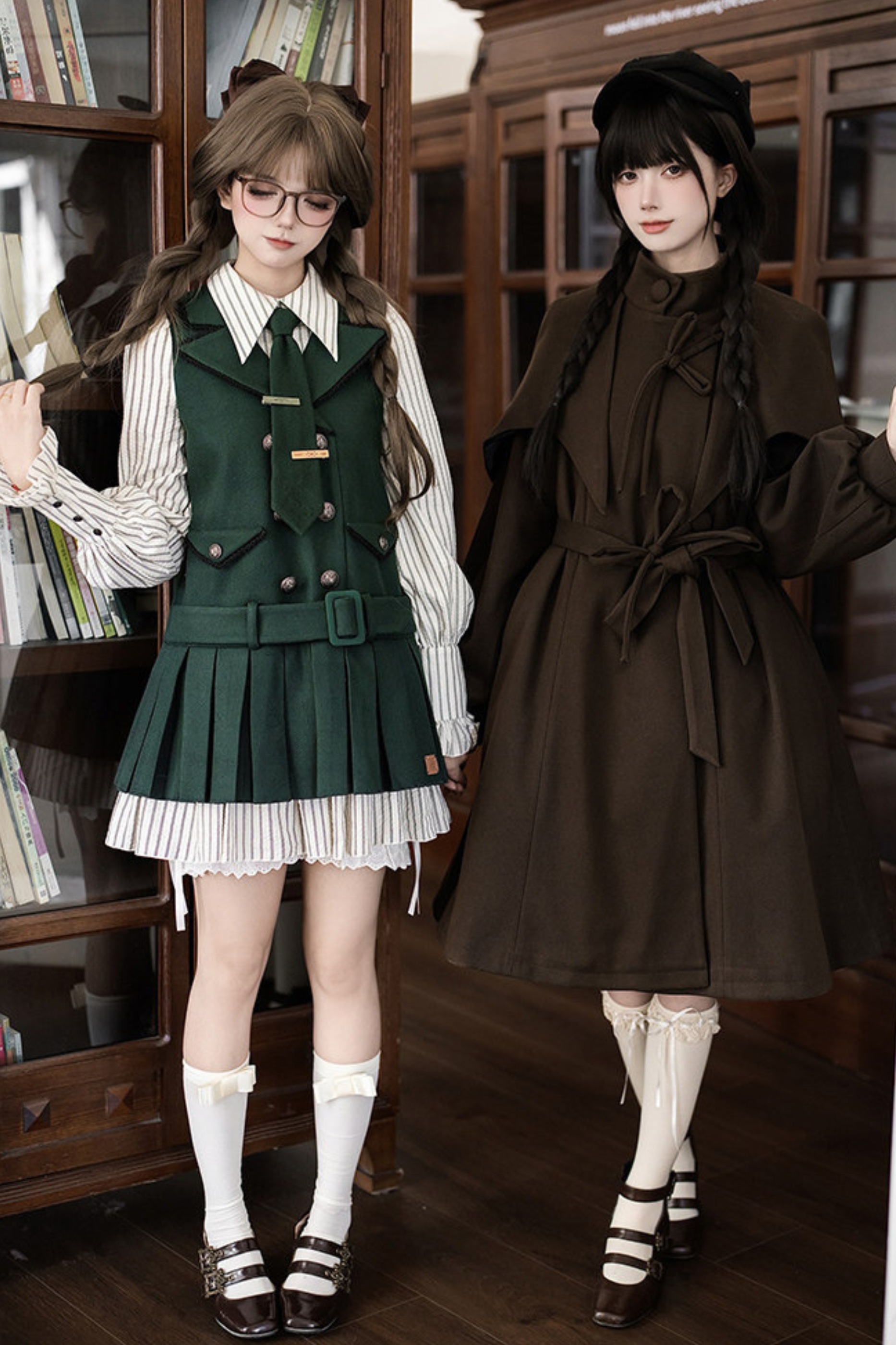 ❤Baker Street Cloak Coat + Striped Dress + Pumpkin Pants + Hat❤