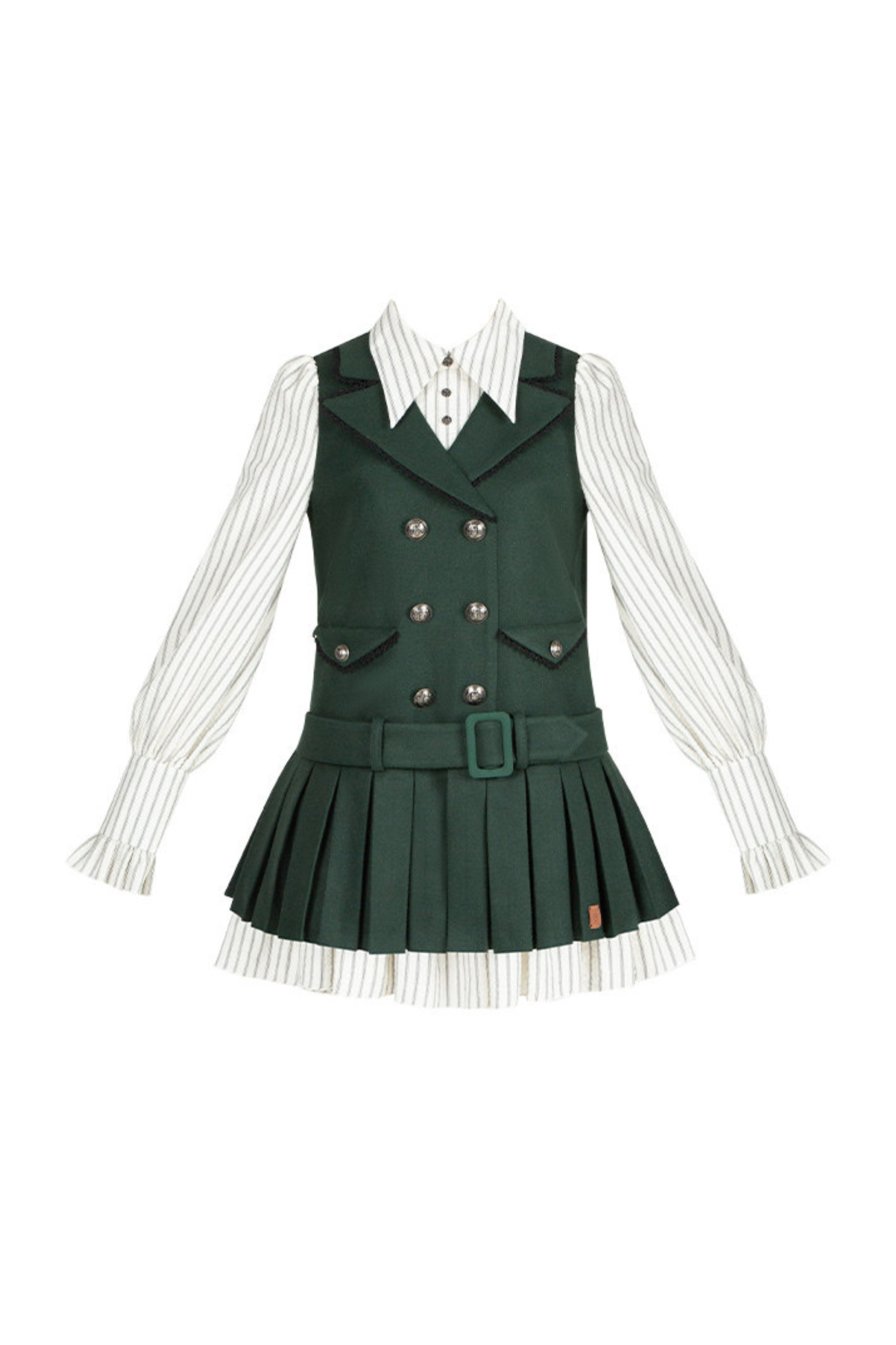 Baker Street Cloak Coat + Striped Dress + Pumpkin Pants + Hat