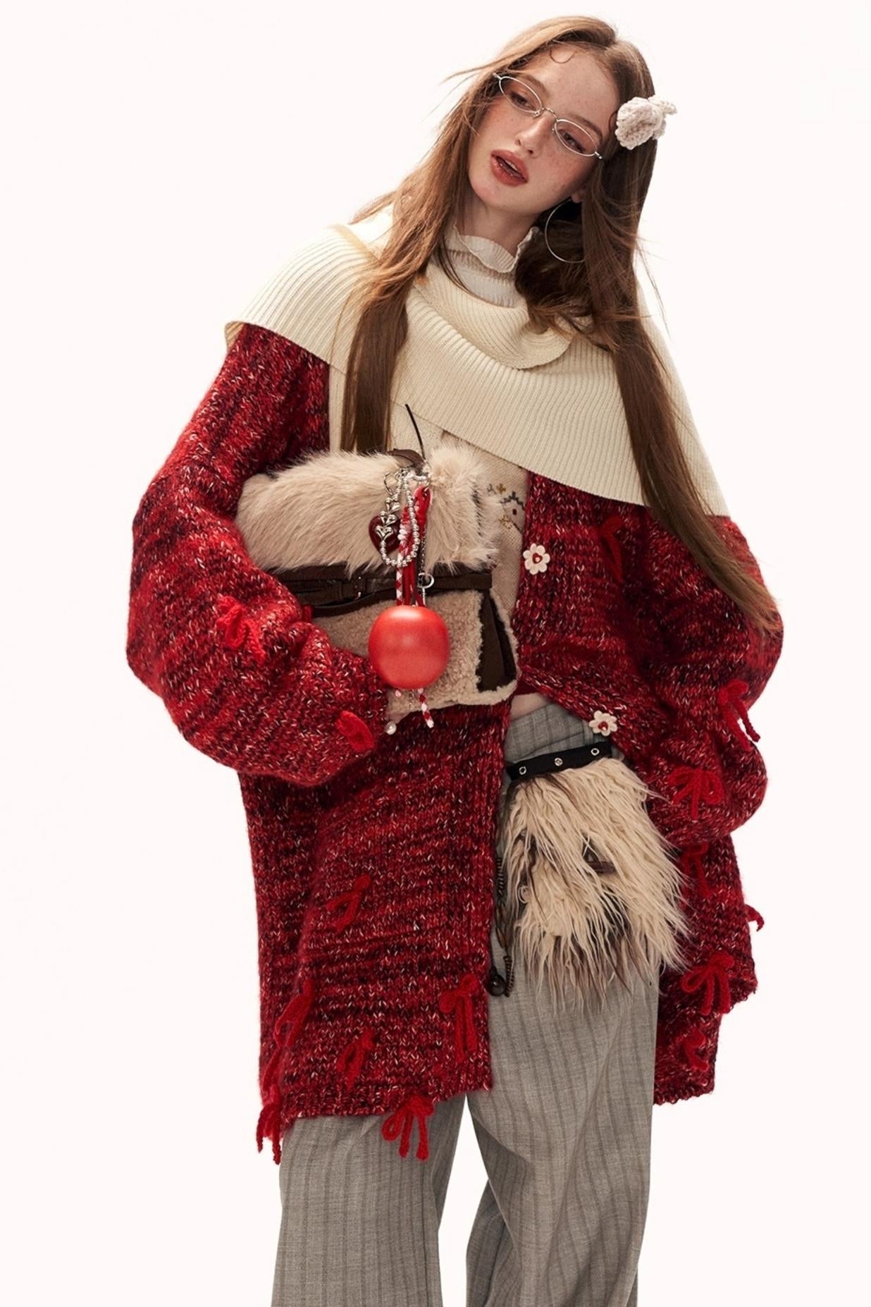 Retro Bow Button Knit Cardigan