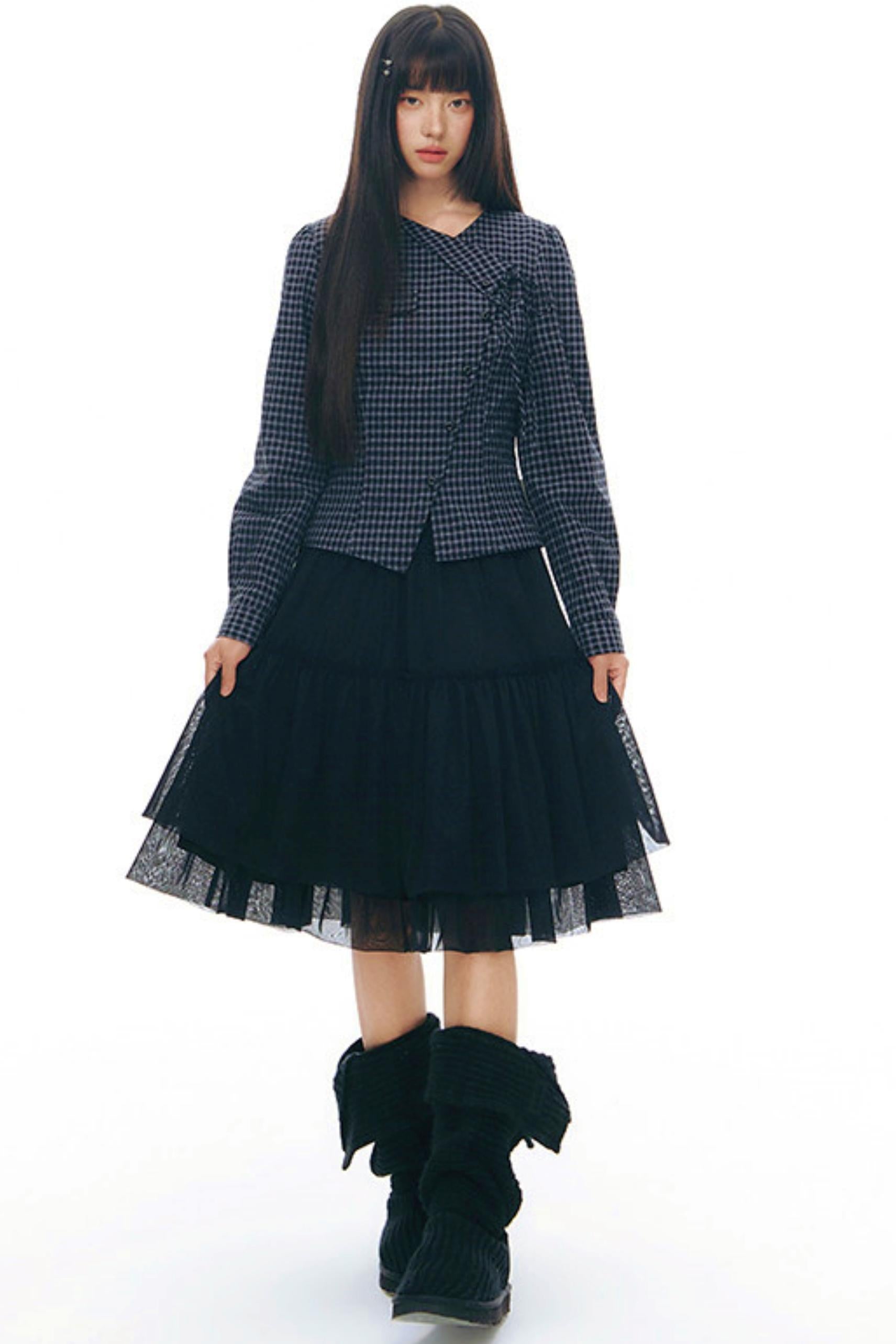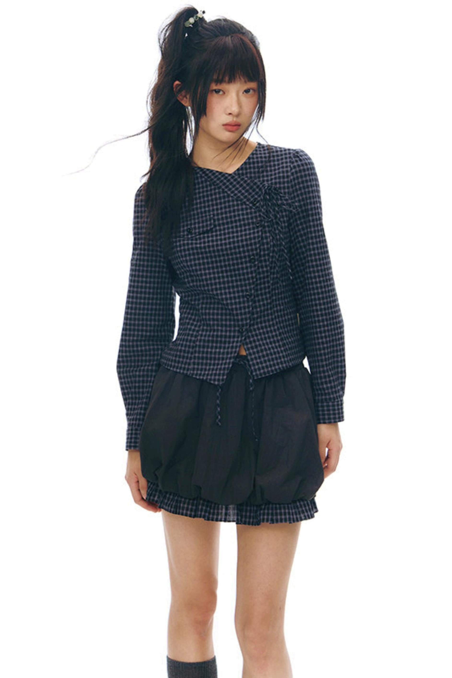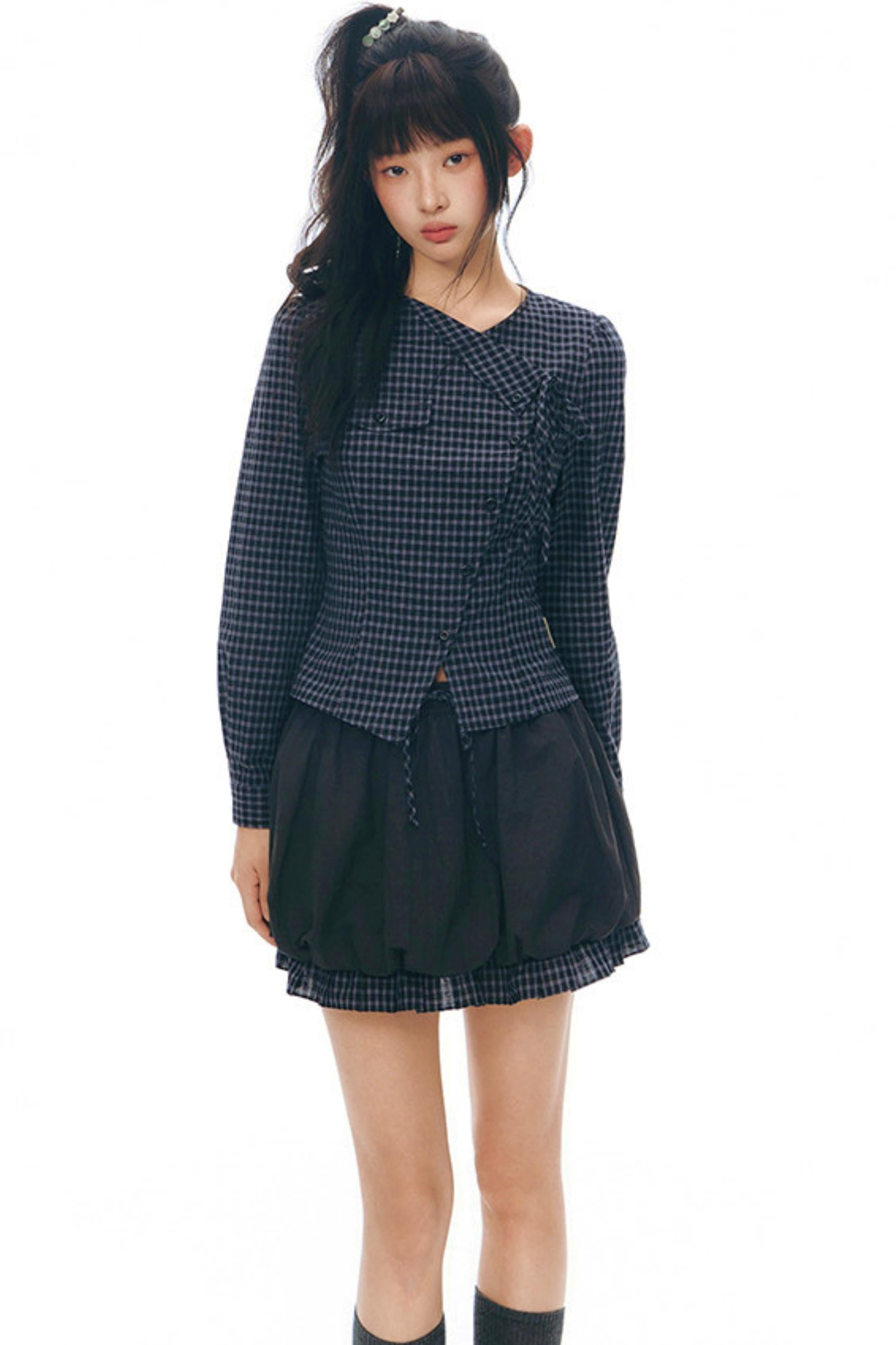 ❤Y2Kリトルチェックドシャツ+スカート❤