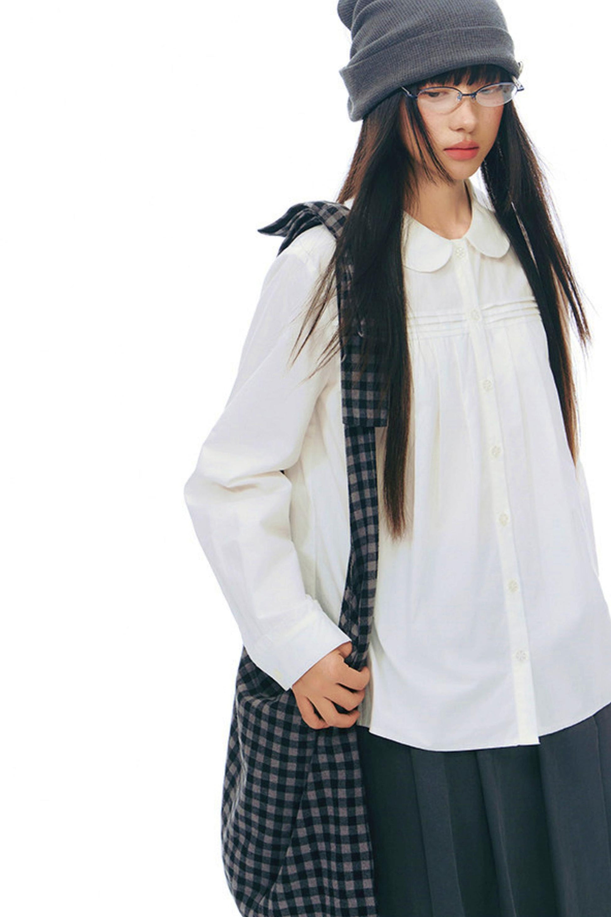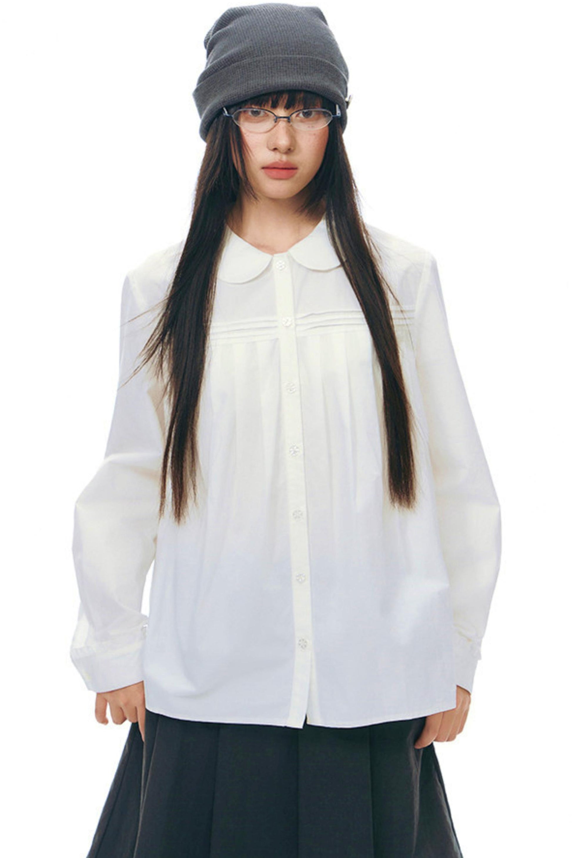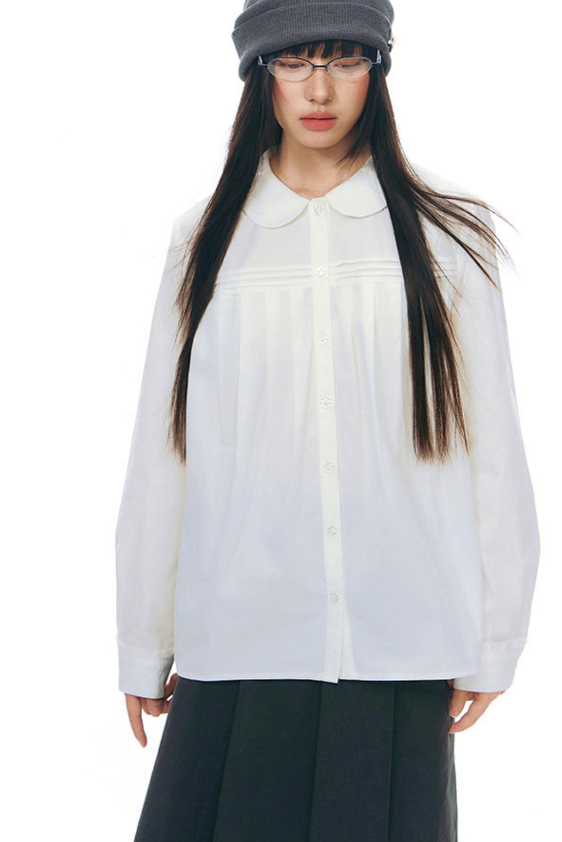 ドールカラープリーツコットンブラウス