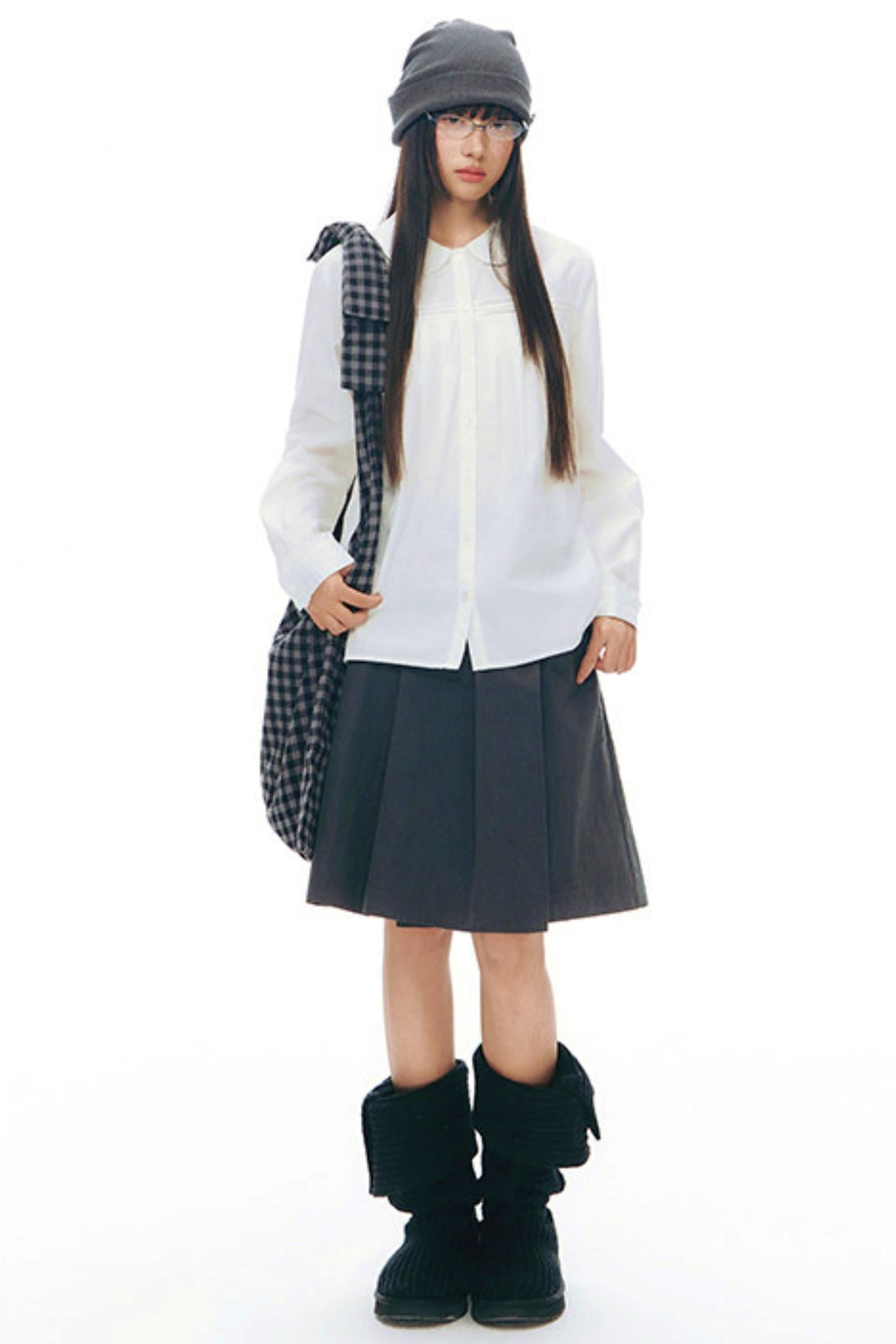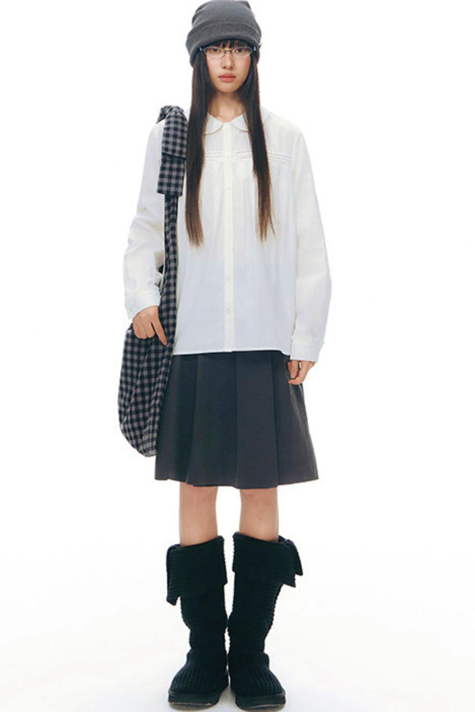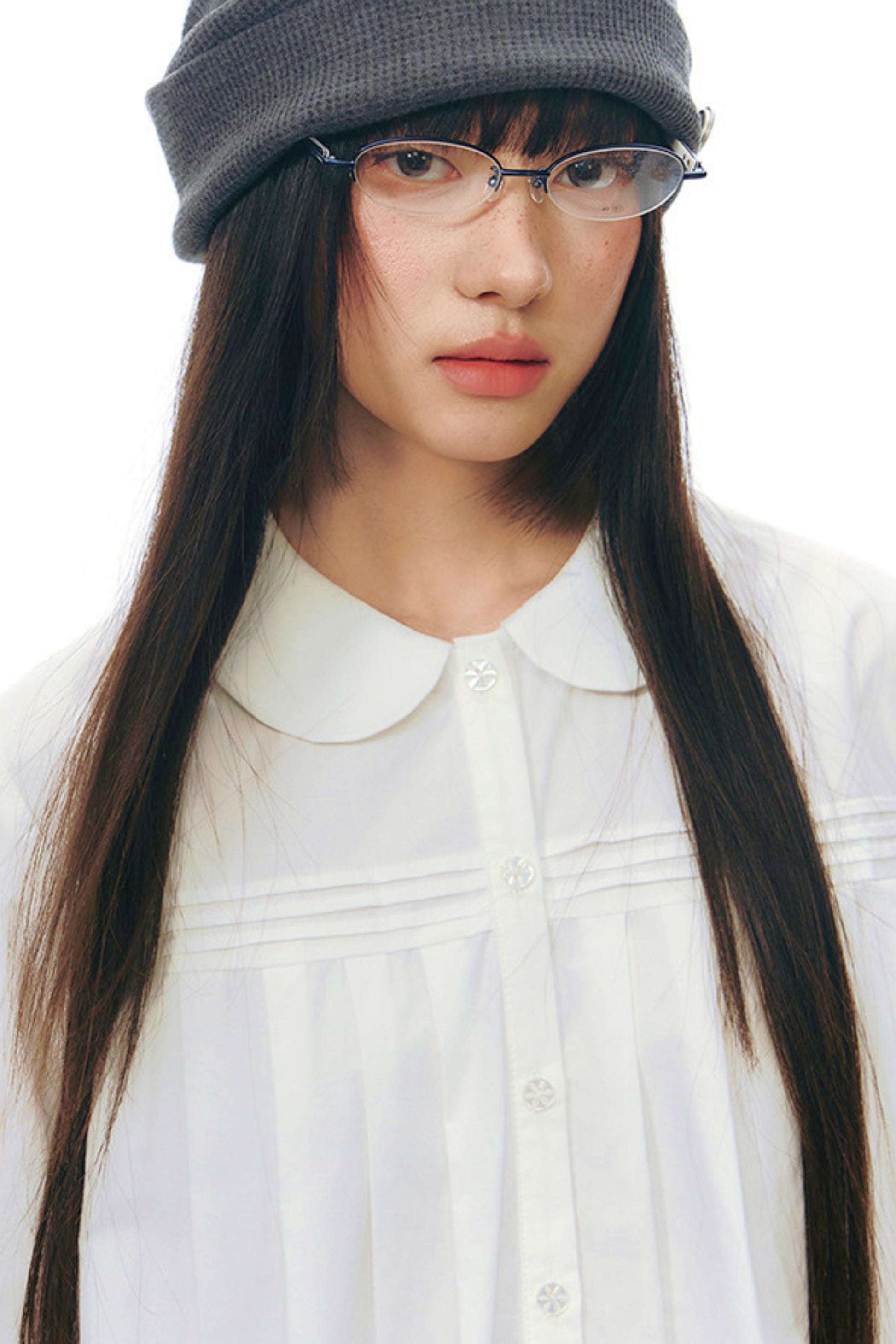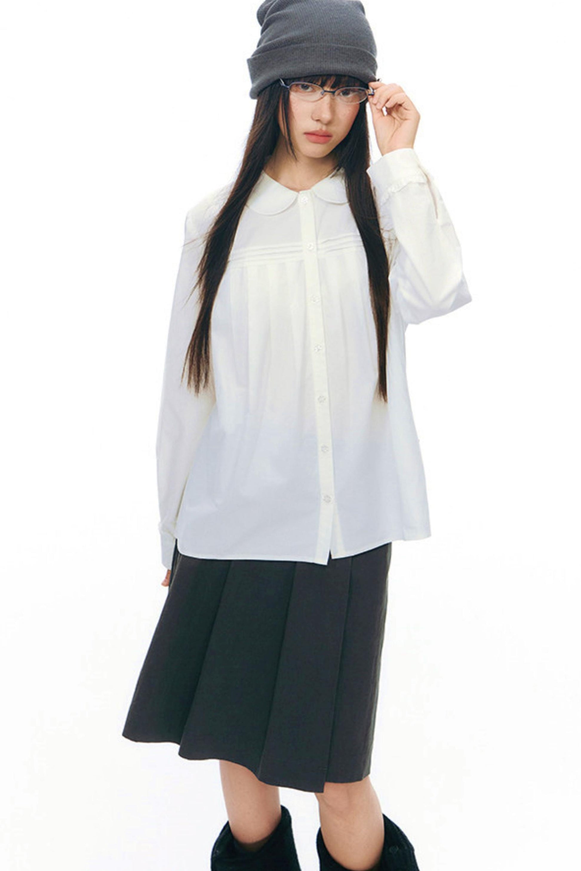 ドールカラープリーツコットンブラウス
