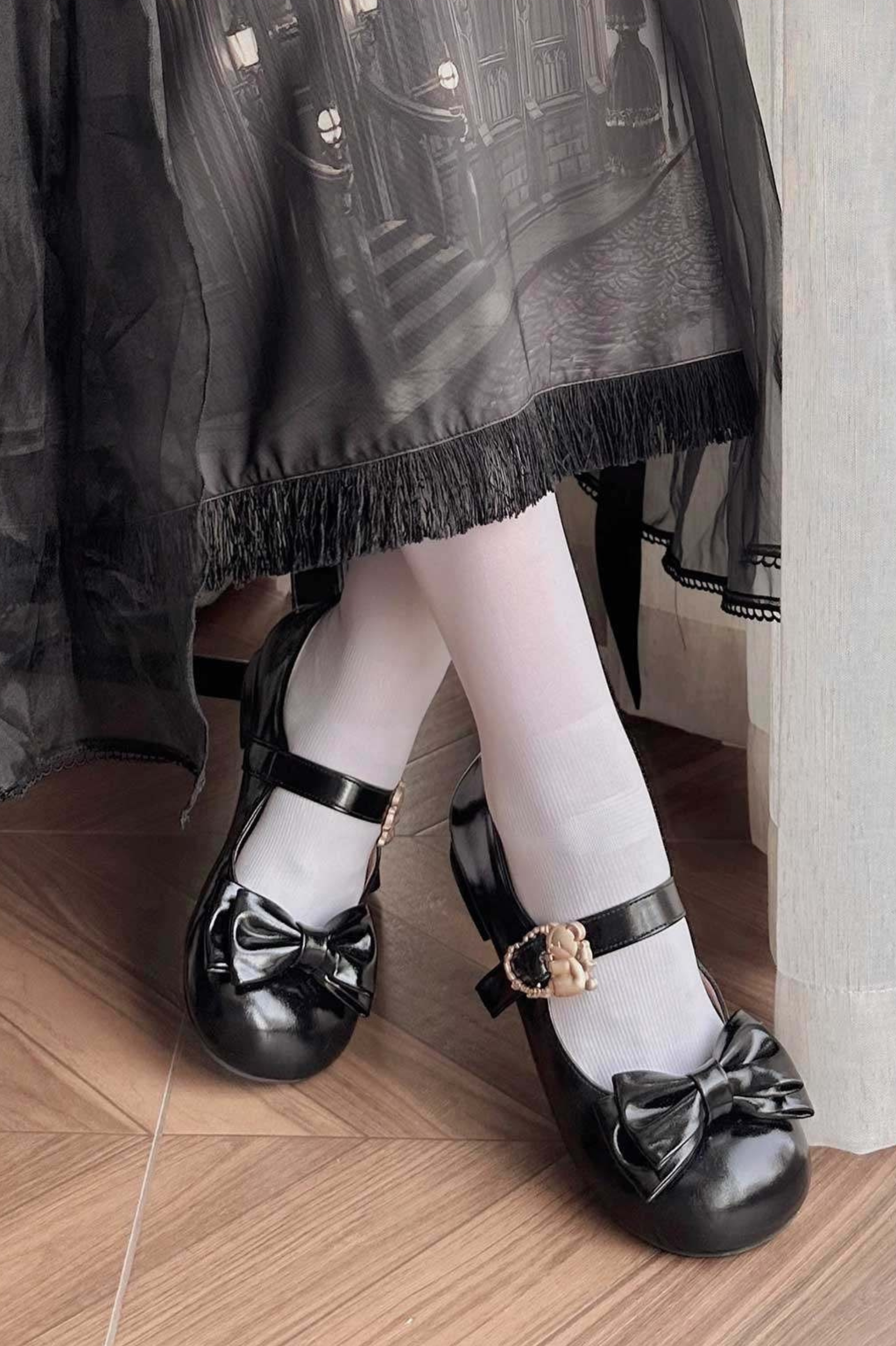 Glossy Sheep Bowknot Shoes