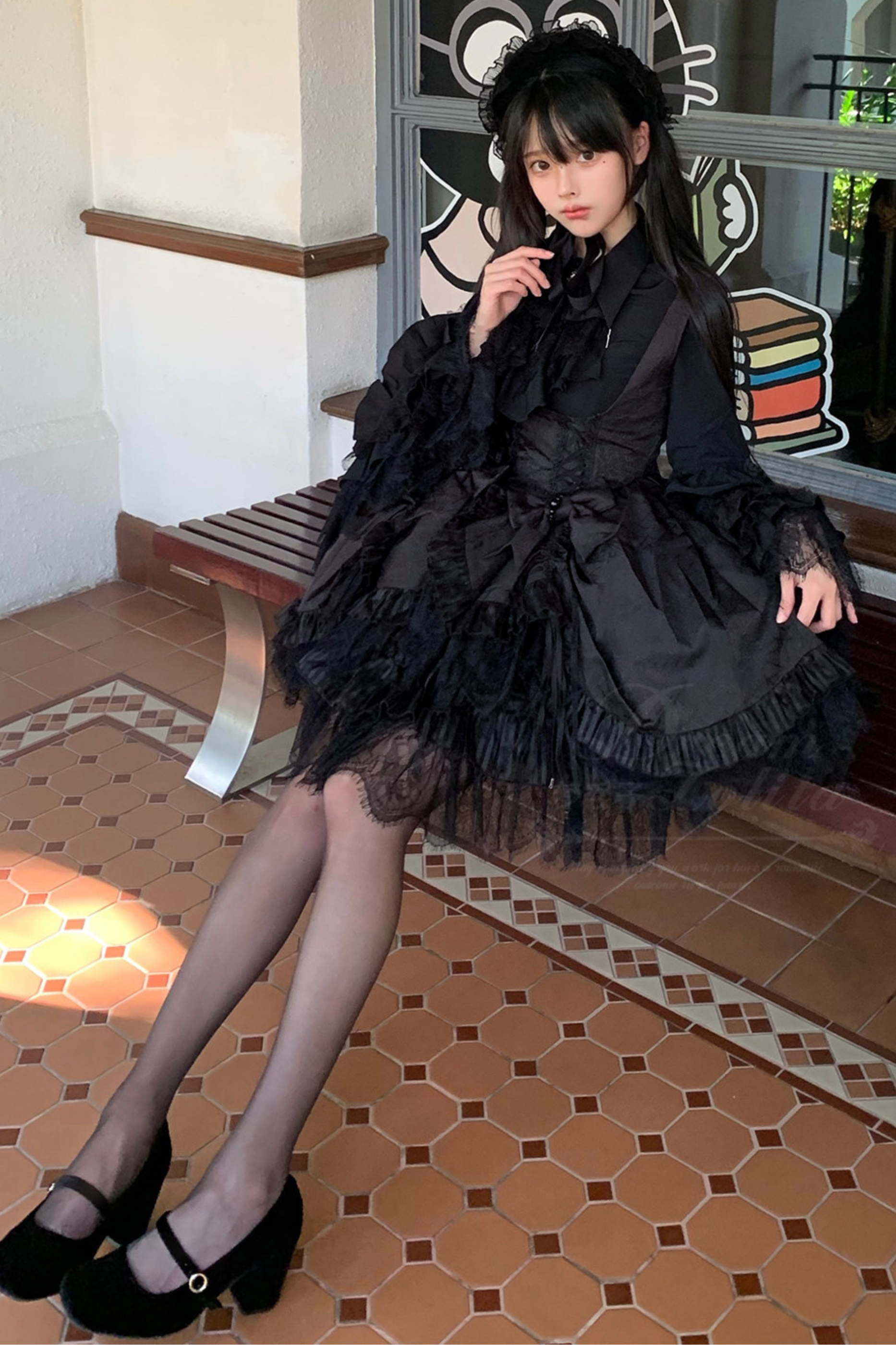 ゴシックバードロリータジャンパースカート+パンプキンパンツスカート+カーテンスカート