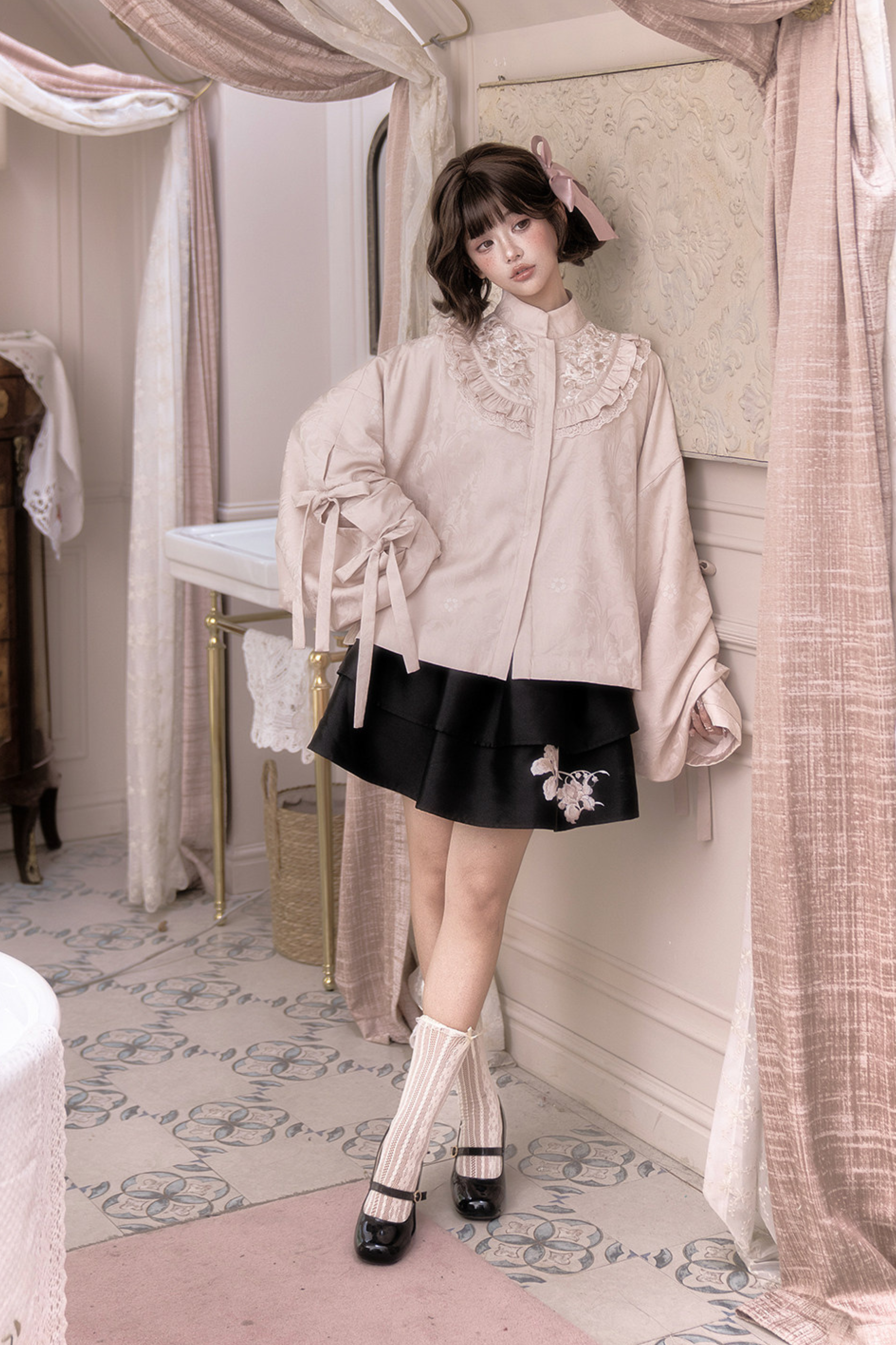 Hanfu Stand Collar Jacket + Puffy Skirt