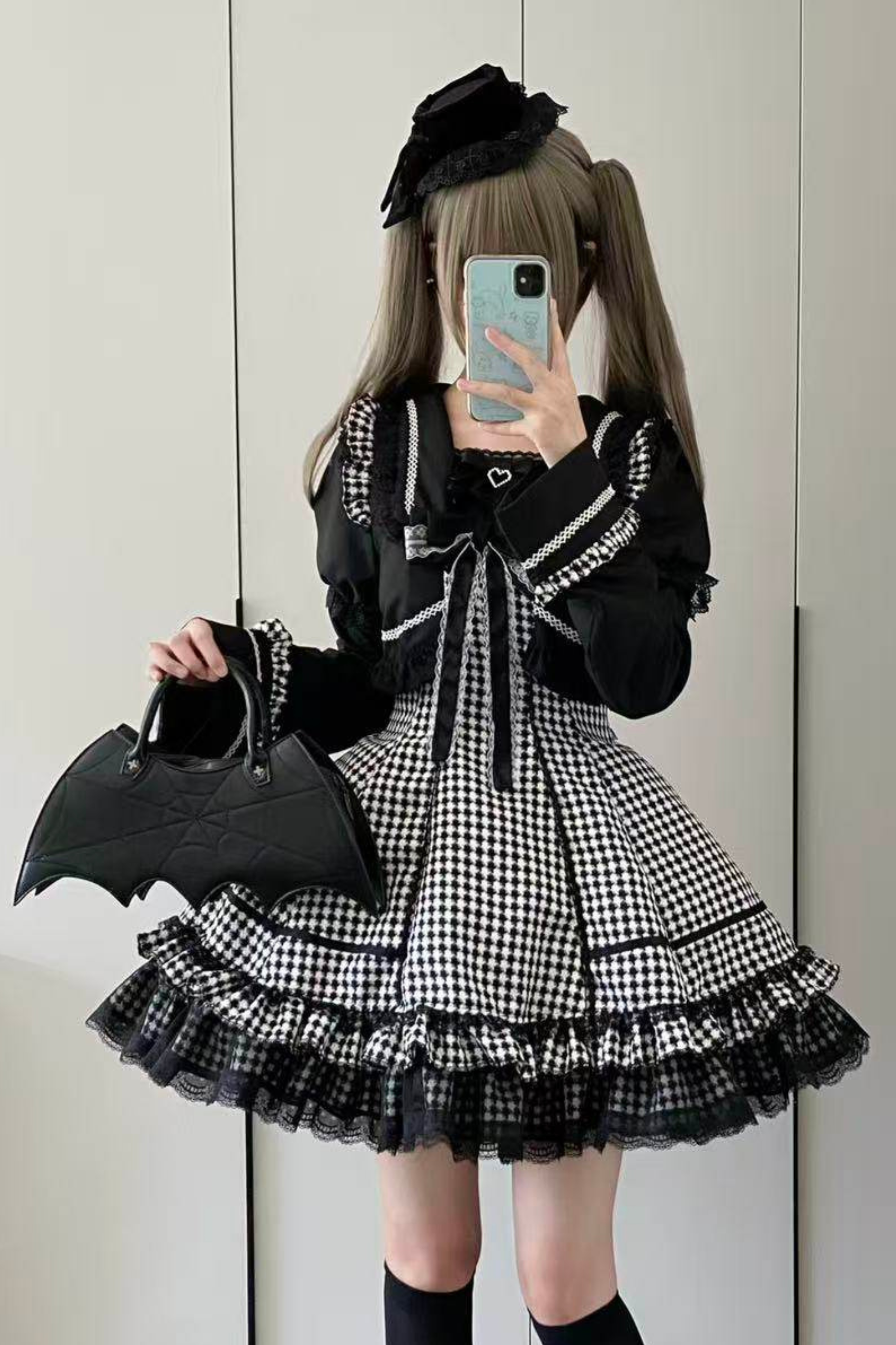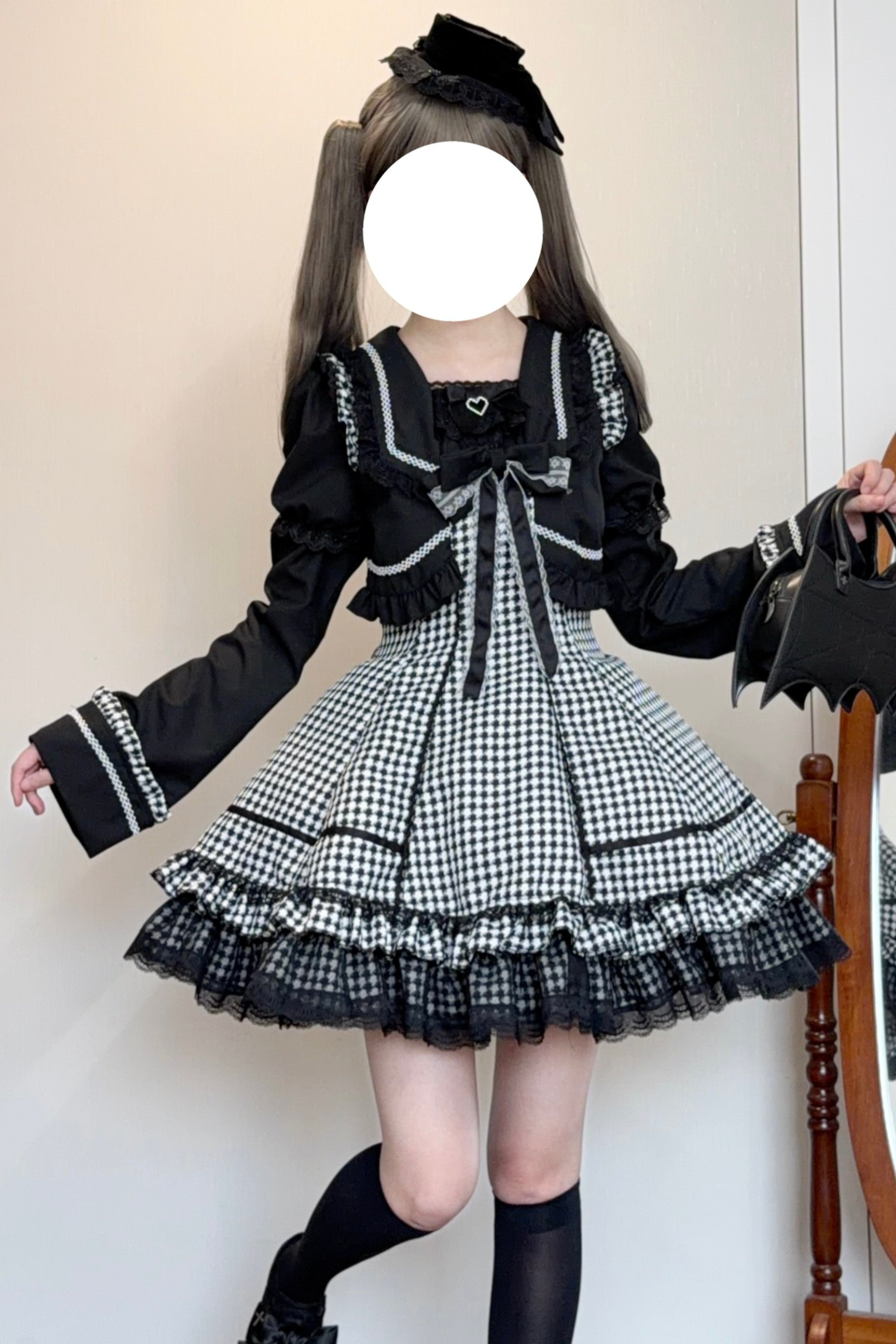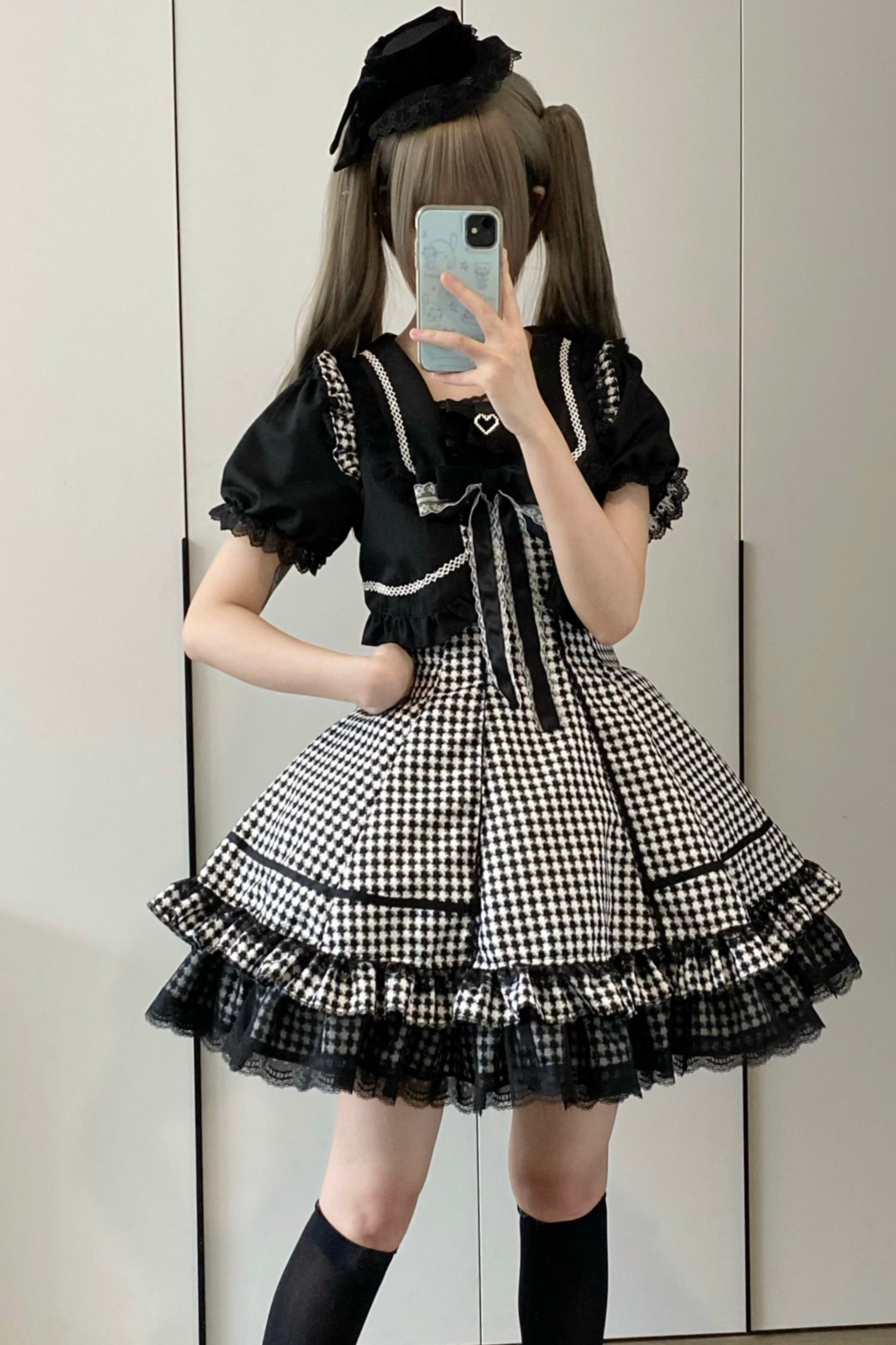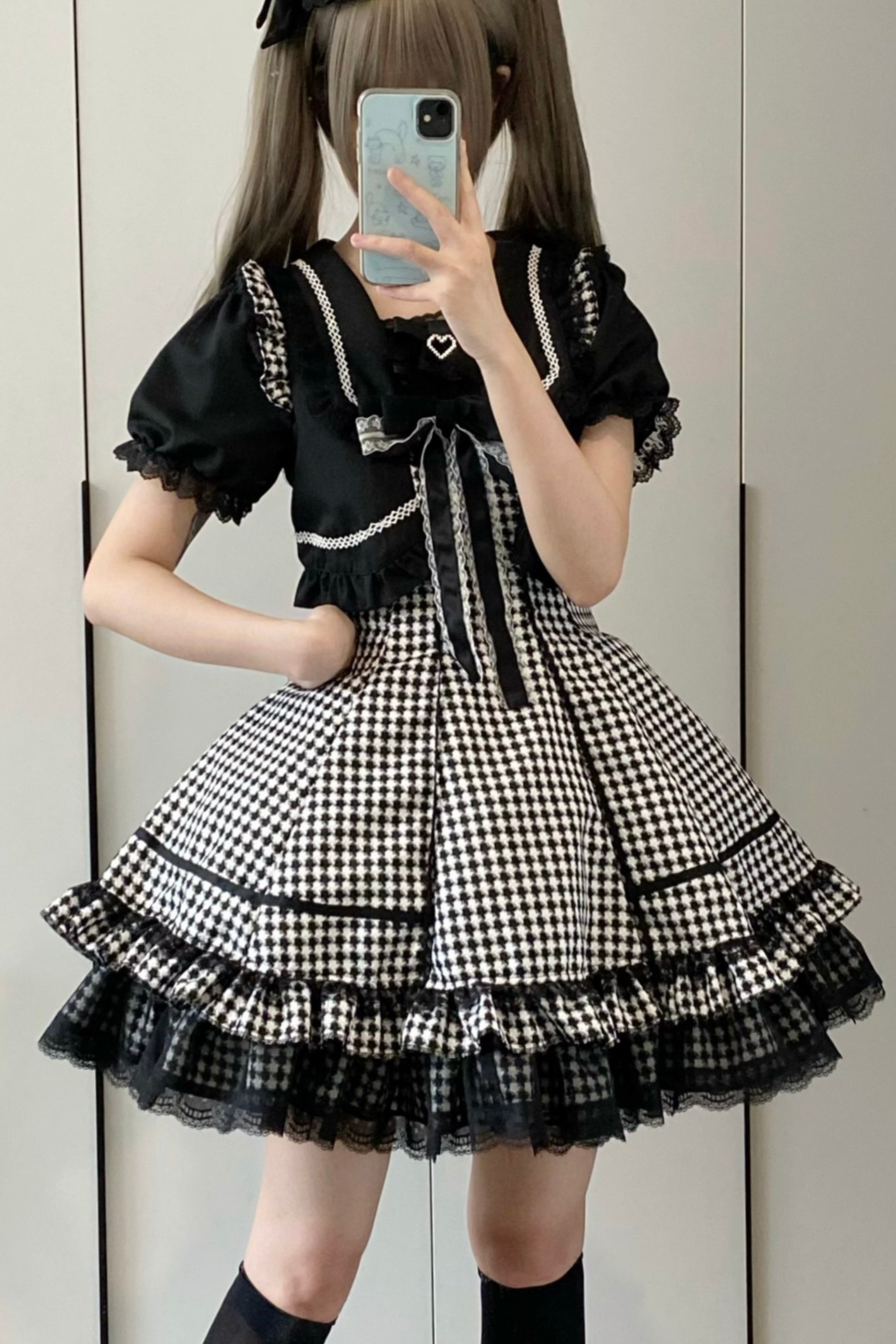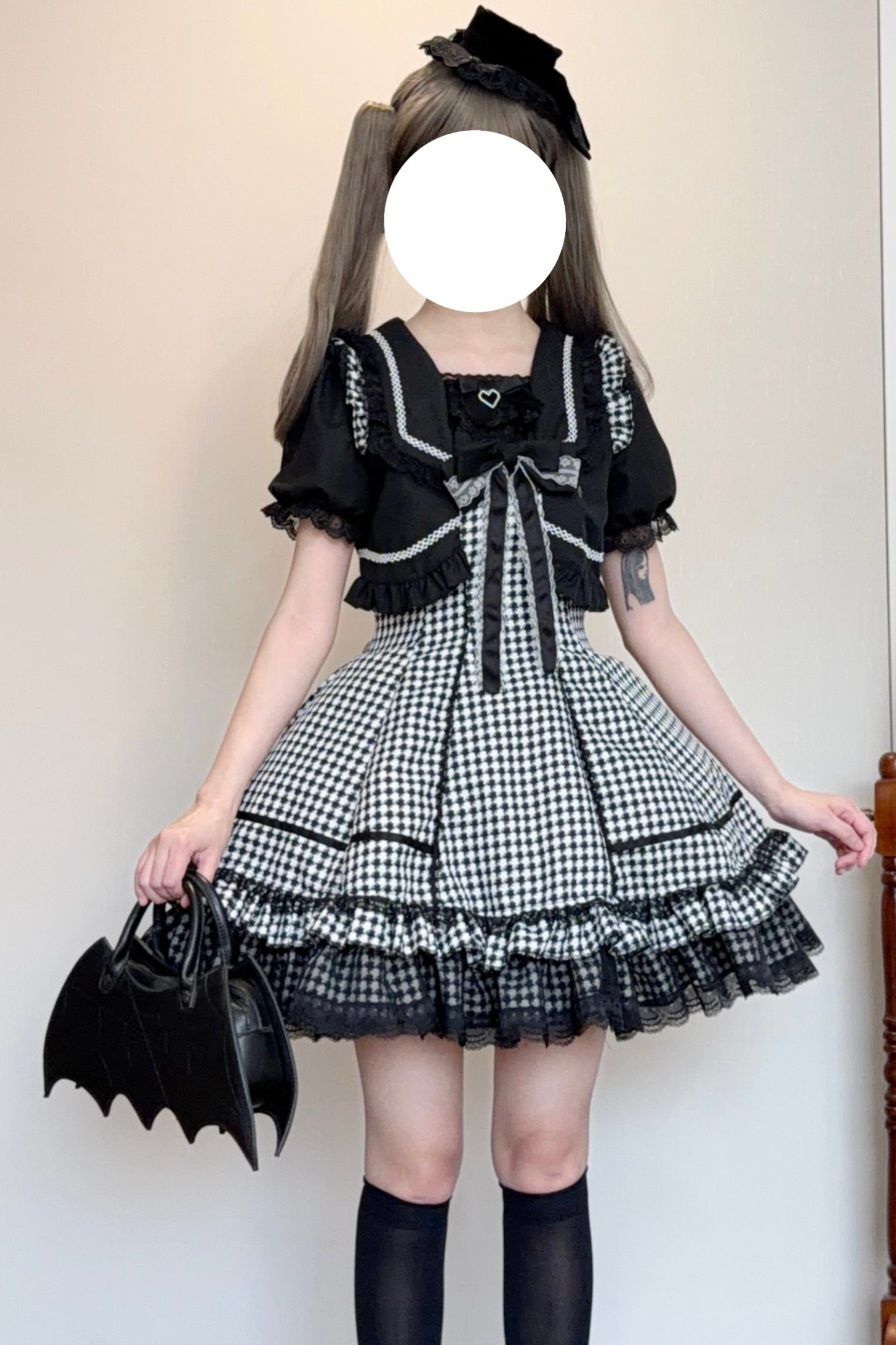 千鳥格子ダークスイートスリーブ付きロリータドレス