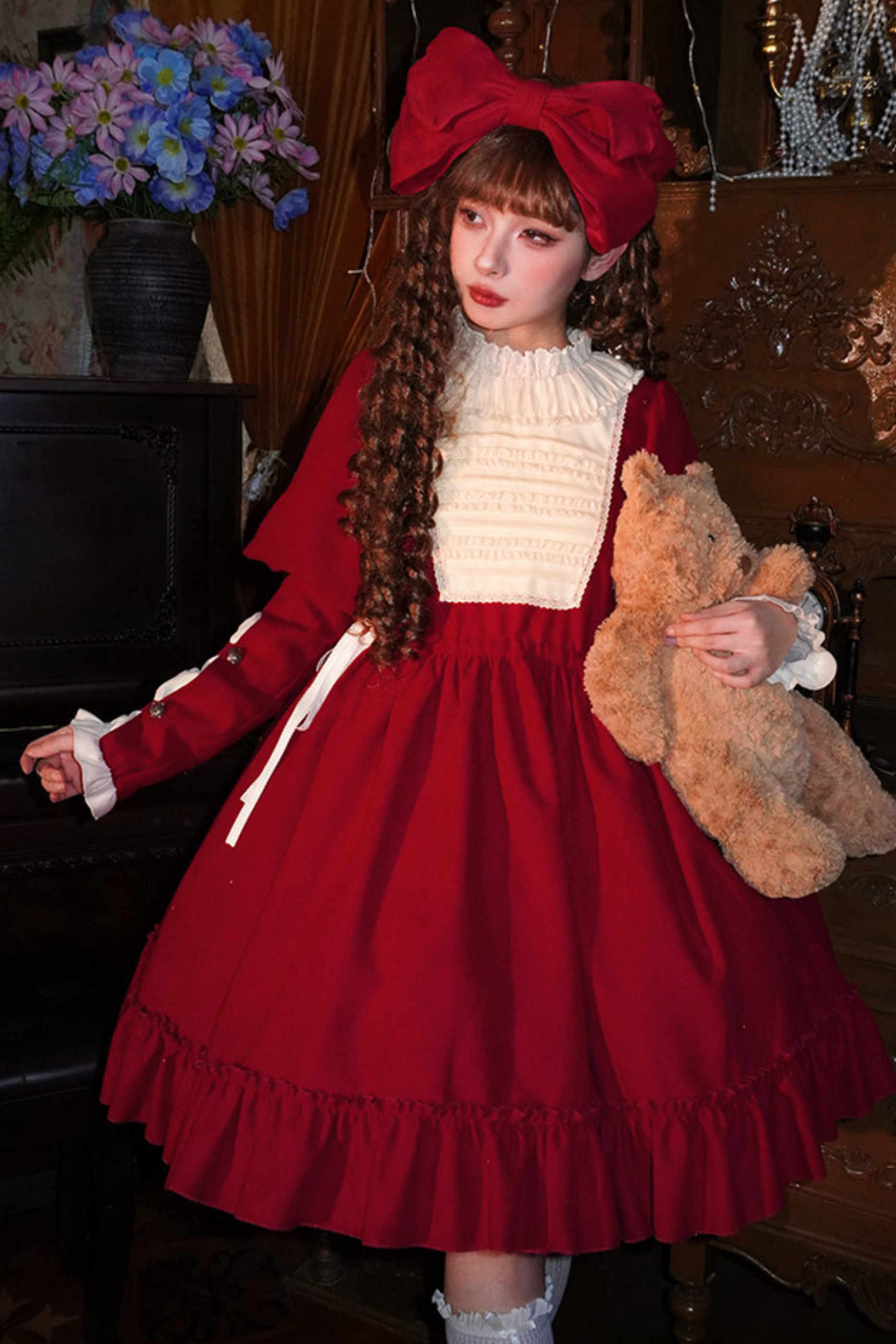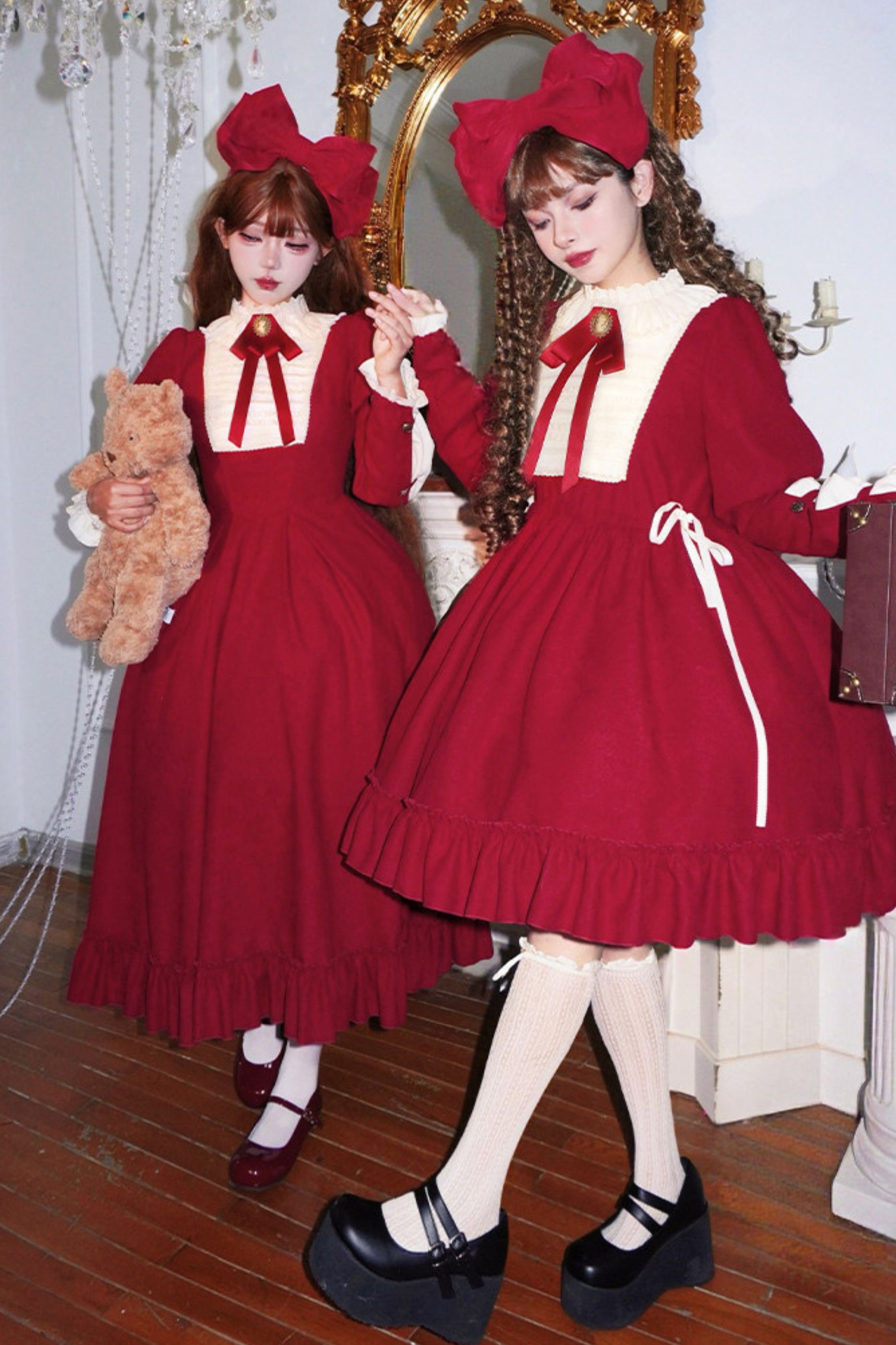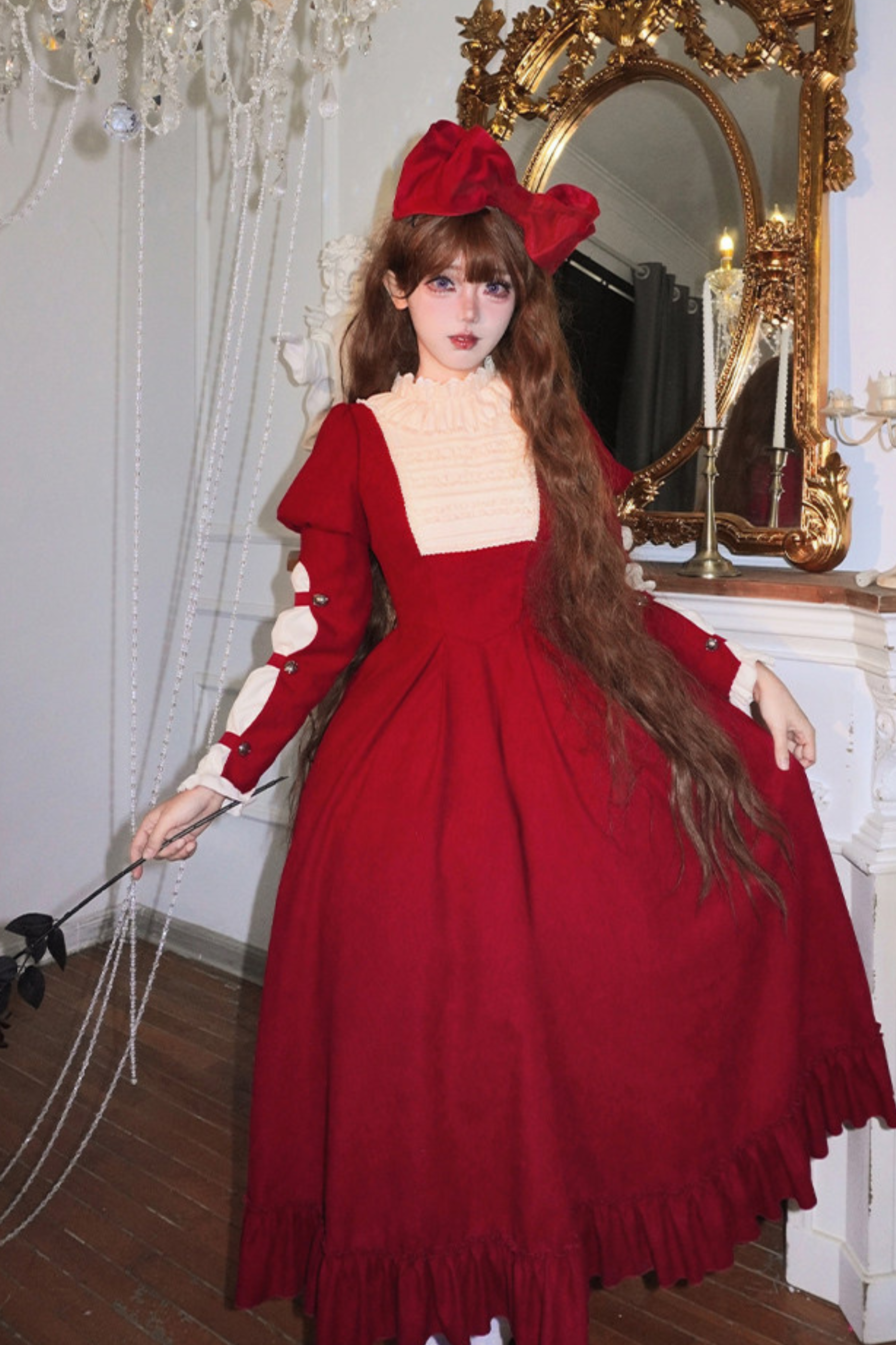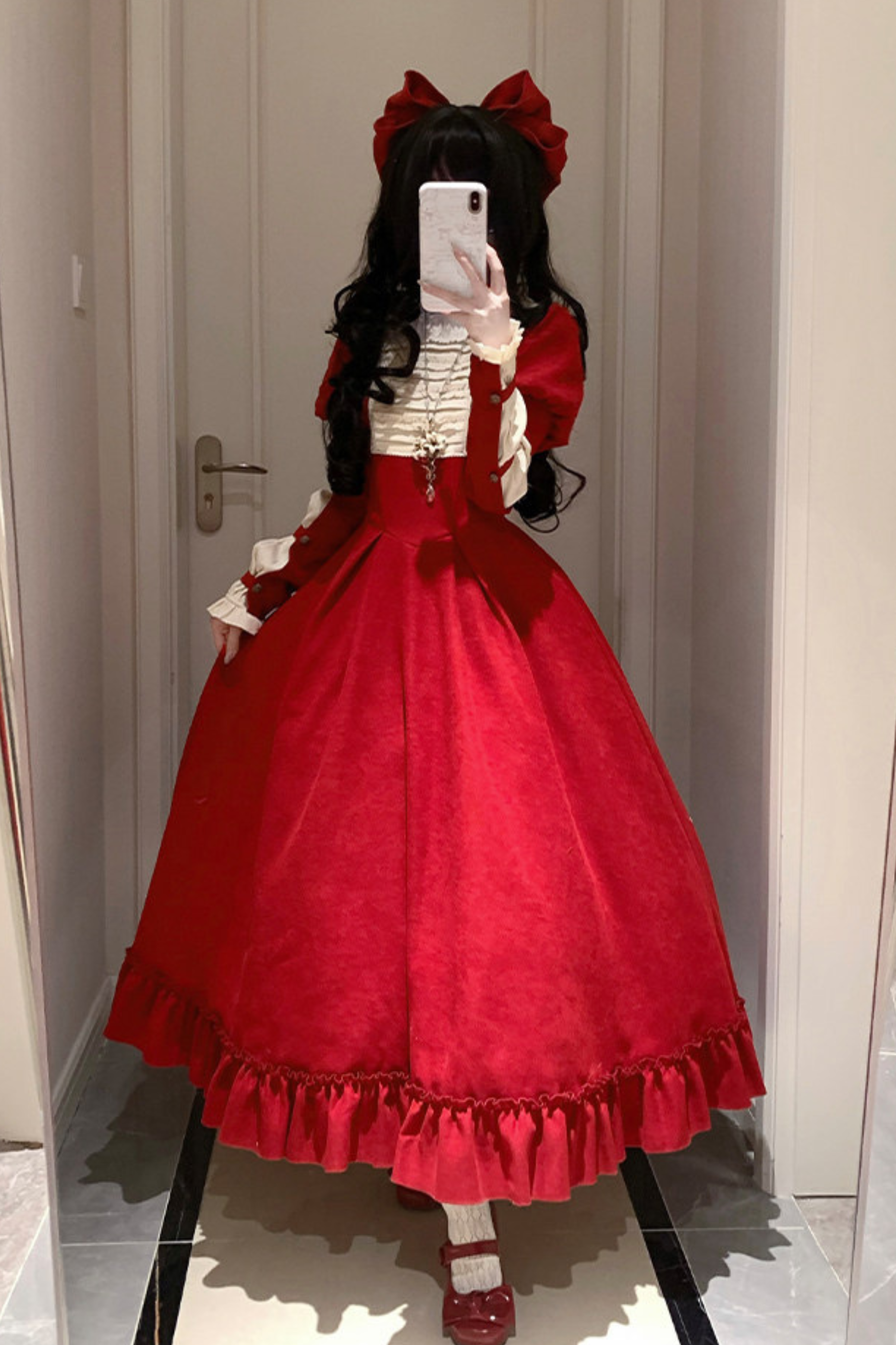 レースラッフルロリータドレス+リボン